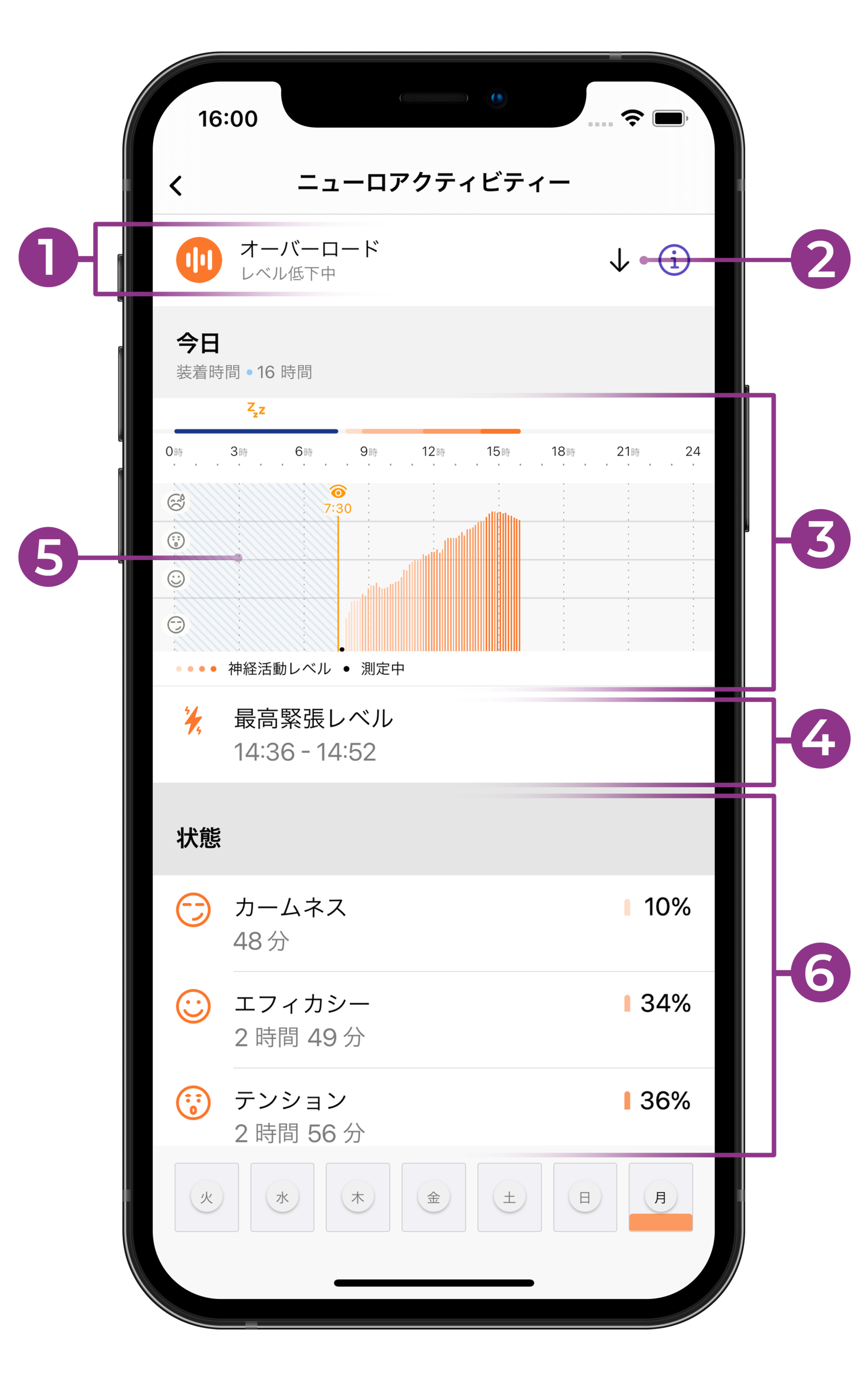 GoBe3の既存機能「ストレスレベル」計測は、自分のストレスのレベルや状態を把握できるものです。今回のアップデートで搭載される「ニューロアクティビティー」機能は、ストレスを事前に認識し、回避するための手助けになります。
