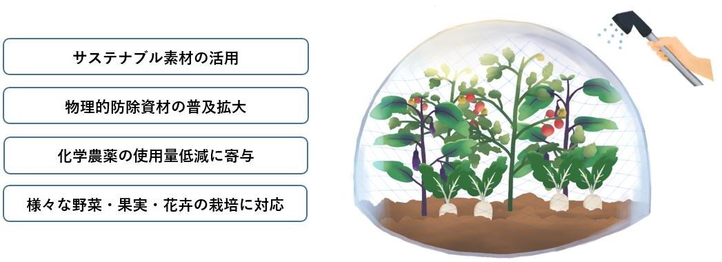 今回の認定を通じて、中越パルプと丸紅は、農業現場への普及拡大を見据えた実証試験を進めるとともに、化学農薬から物理的防除資材への転換を推進し、殺菌剤市場(国内出荷額730 億円)での販路を開拓します。