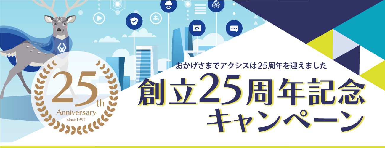 株式会社アクシスは創立25年を迎えました。本日より「創⽴25周年記念キャンペーン」を実施いたします。