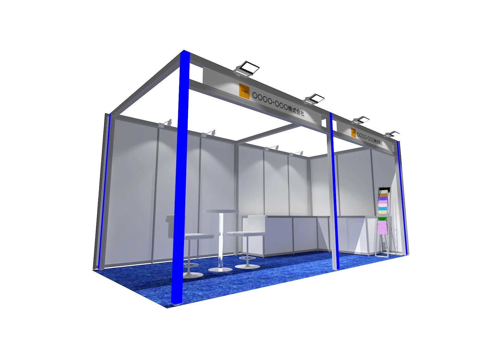 ▶商談セット(ハイカウンター×1、ハイチェア×2)×2 ▶LEDパネル(A1)×3 ▶カタログスタンド ▶カーペット ▶電気工事(照明・コンセント) |