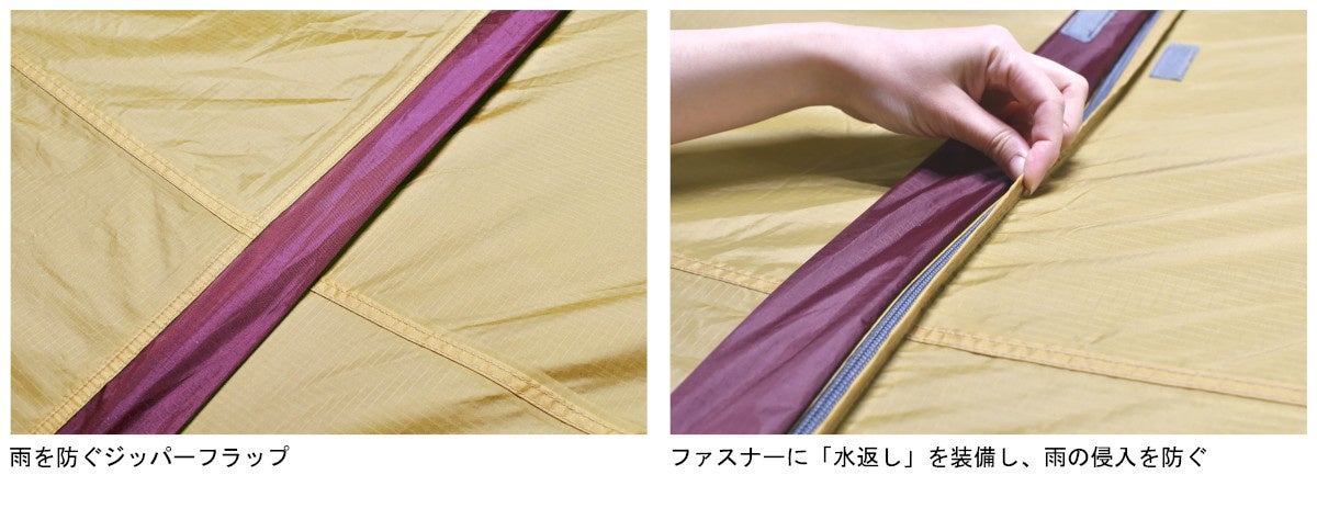材質(品質) | フライ:本体=ポリエステルリップストップ210T(PU2,000mm)UV加工、撥水加工、メッシュ=ポリエステルノーシームメッシュ インナーテント:ウォール=ポリエステル185T(通気性撥水加工)、メッシュ=ポリエステルノーシームメッシュ、フロア=ポリエステルOXF150D(PU3,000mm) ポール:スチール(粉体塗装)φ22mm・φ19mm |