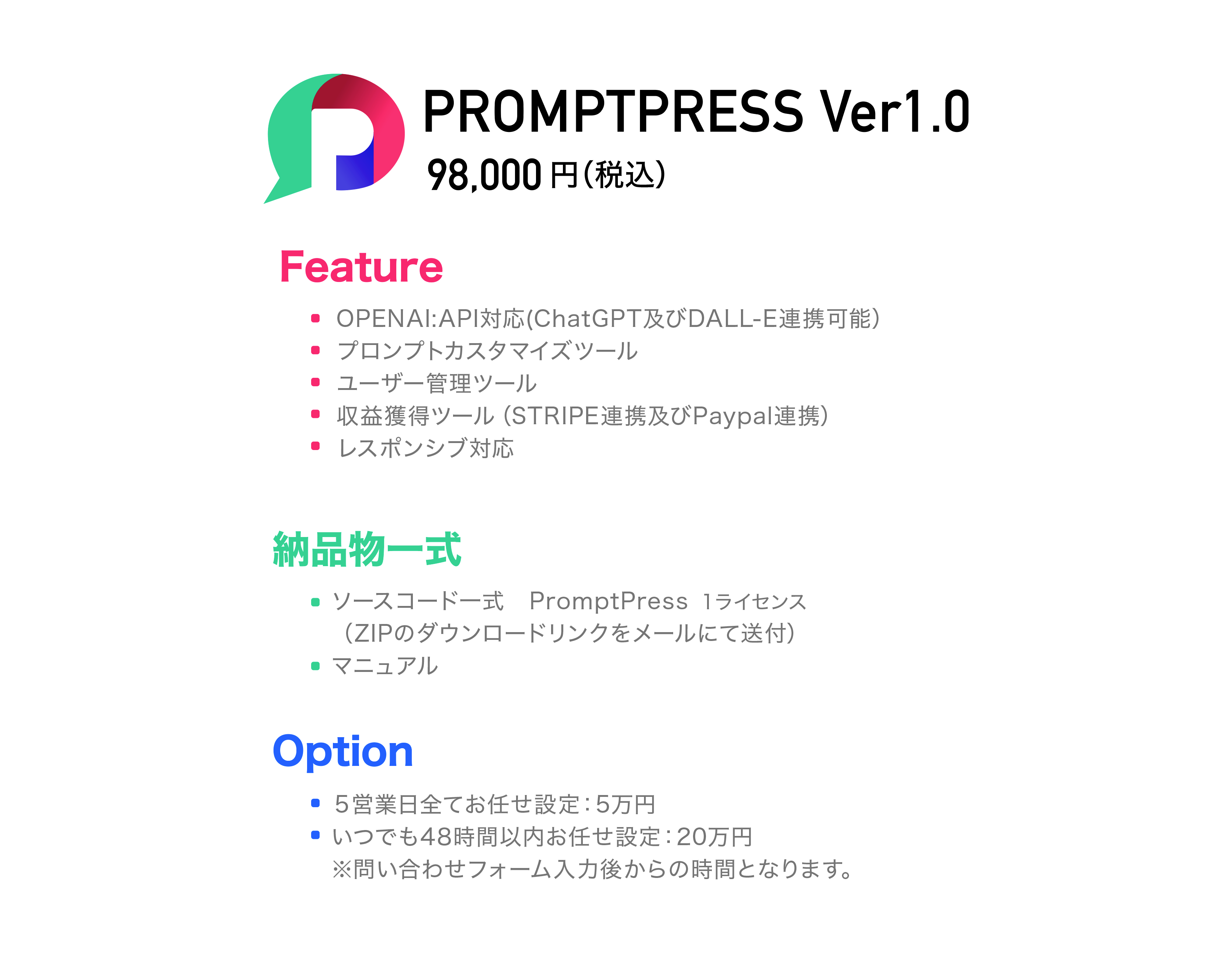 誰でもAIサービスがローンチ可能!「プロンプト」を「商品化」するためのCMS Prompt-Pressを販売開始いたします。