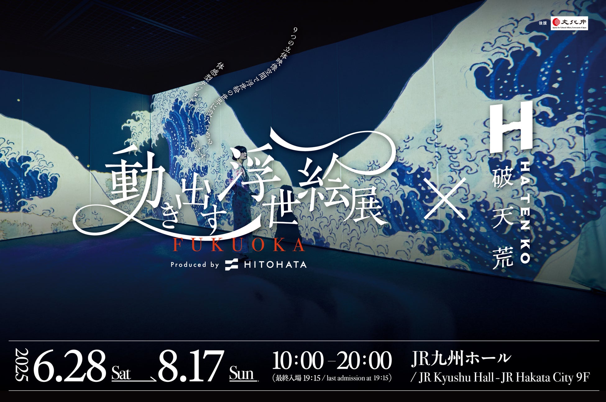 動き出す浮世絵展 FUKUOKA 実行委員会(JR 博多シティ、KBC、シーズライブ、一旗、テレビ愛知)主催、浮世絵の世界に没入できる体感型デジタルアートミュージアム「動き出す浮世絵展 FUKUOKA」にて、株式会社キャライノベイト(本社:東京都台東区、代表取締役:清水篤)が手掛ける香水ブランド「破天荒」の香りの演出による、初のコラボレーションが決定しました。「動き出す浮世絵展 FUKUOKA」は、2025年6月28日(土)からJR九州ホール(JR 博多シティ9F)にて開催いたします。