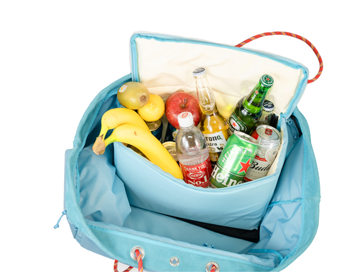 このクーラーは更に、たためるので収納量調整が可能。クーラーを使わない時はバッグの収納量を約1.5倍にアップできます。クーラーをたたんで外出、帰りにアイスや冷凍食品を買ってもしっかり保冷できます。