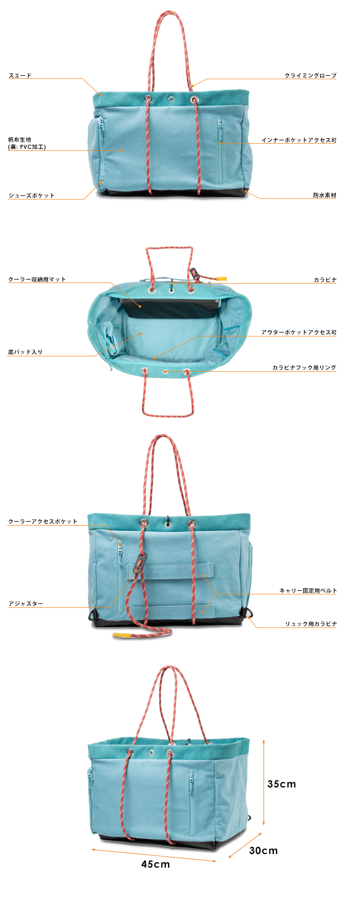 本体別布 :ターポリン(ポリエステル、樹脂 PVC)