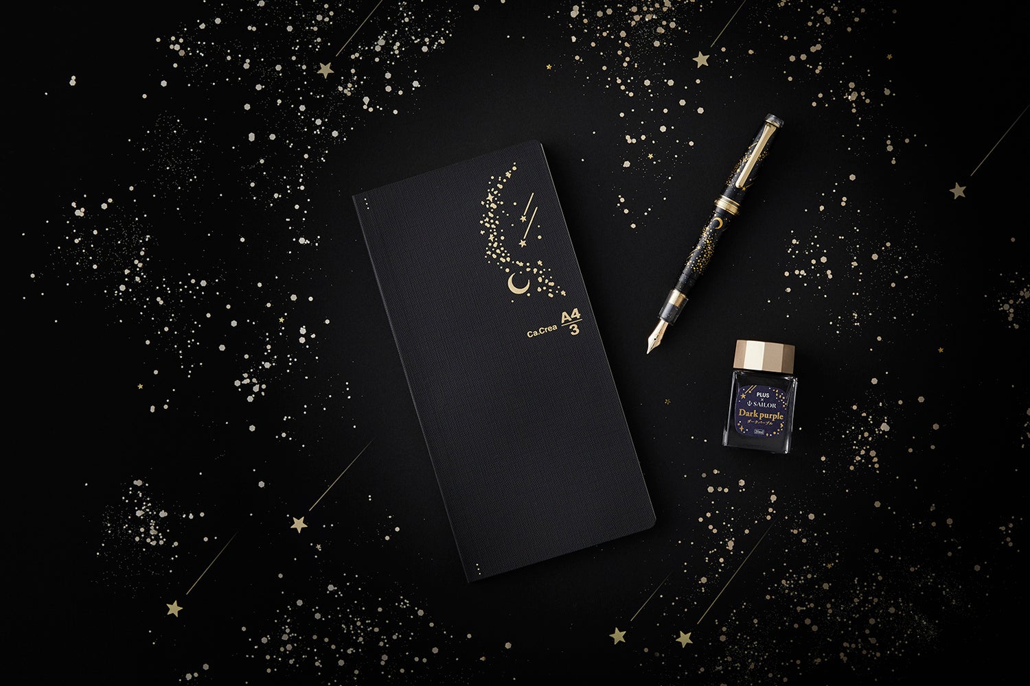 星空をテーマにしたノート・万年筆・ボトルインクの3点セット