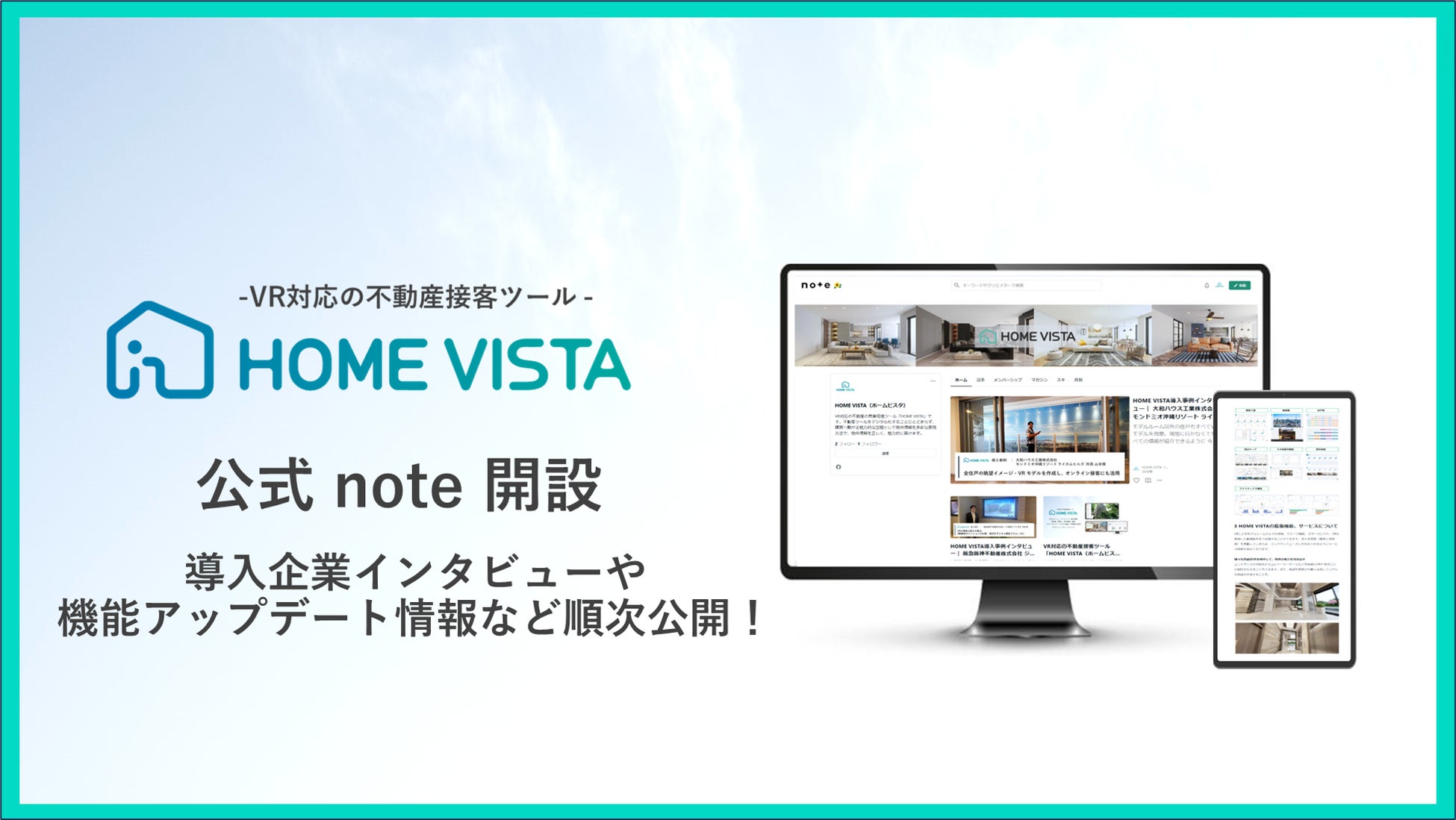 VR対応の不動産接客ツール 「HOME VISTA(ホームビスタ)」公式note開設。導入企業インタビュー等を順次公開。