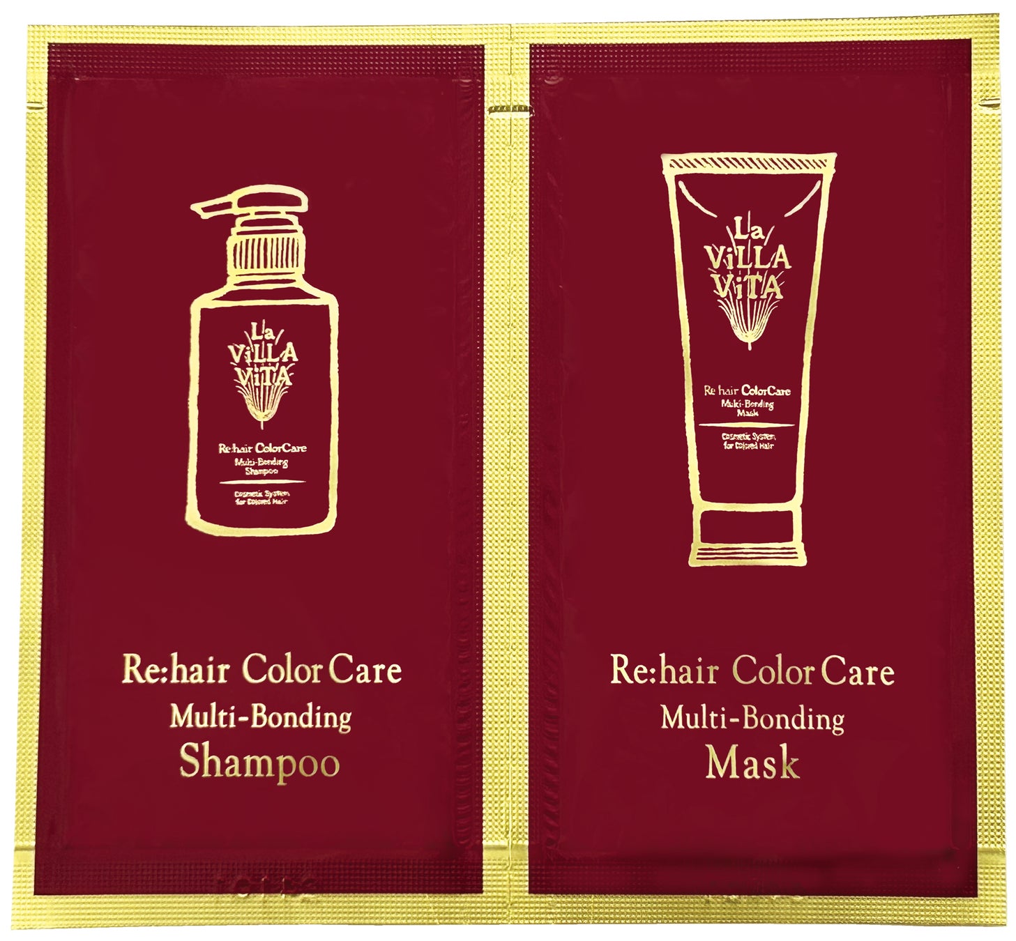 まずは1日、感動体験。カラーダメージを芯から補修。「リ・ヘアカラーケア マルチボンディングシャンプー」と「リ・ヘアカラーケア マルチボンディングマスク」各1包分のトライアルです。