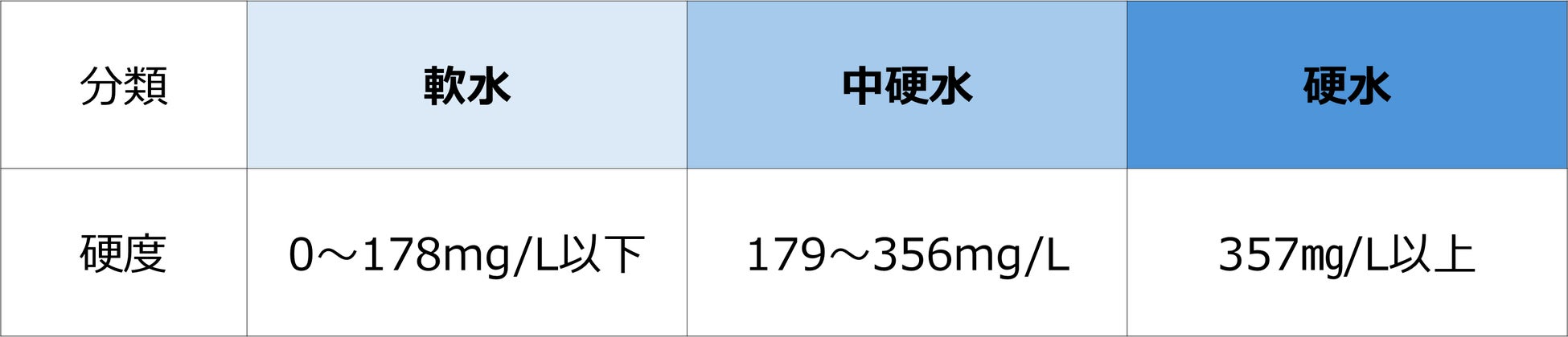 よく聞く軟水・硬水という言葉ですが、ペットボトルのラベルに書かれている硬度によって決まります。硬度はカルシウムとマグネシウムの含有量によって算出される値です。軟水と硬水の分け方には様々な基準がありますが、日本アクアソムリエ協会では理化学辞典の基準を用いています。