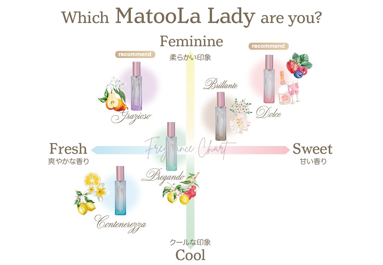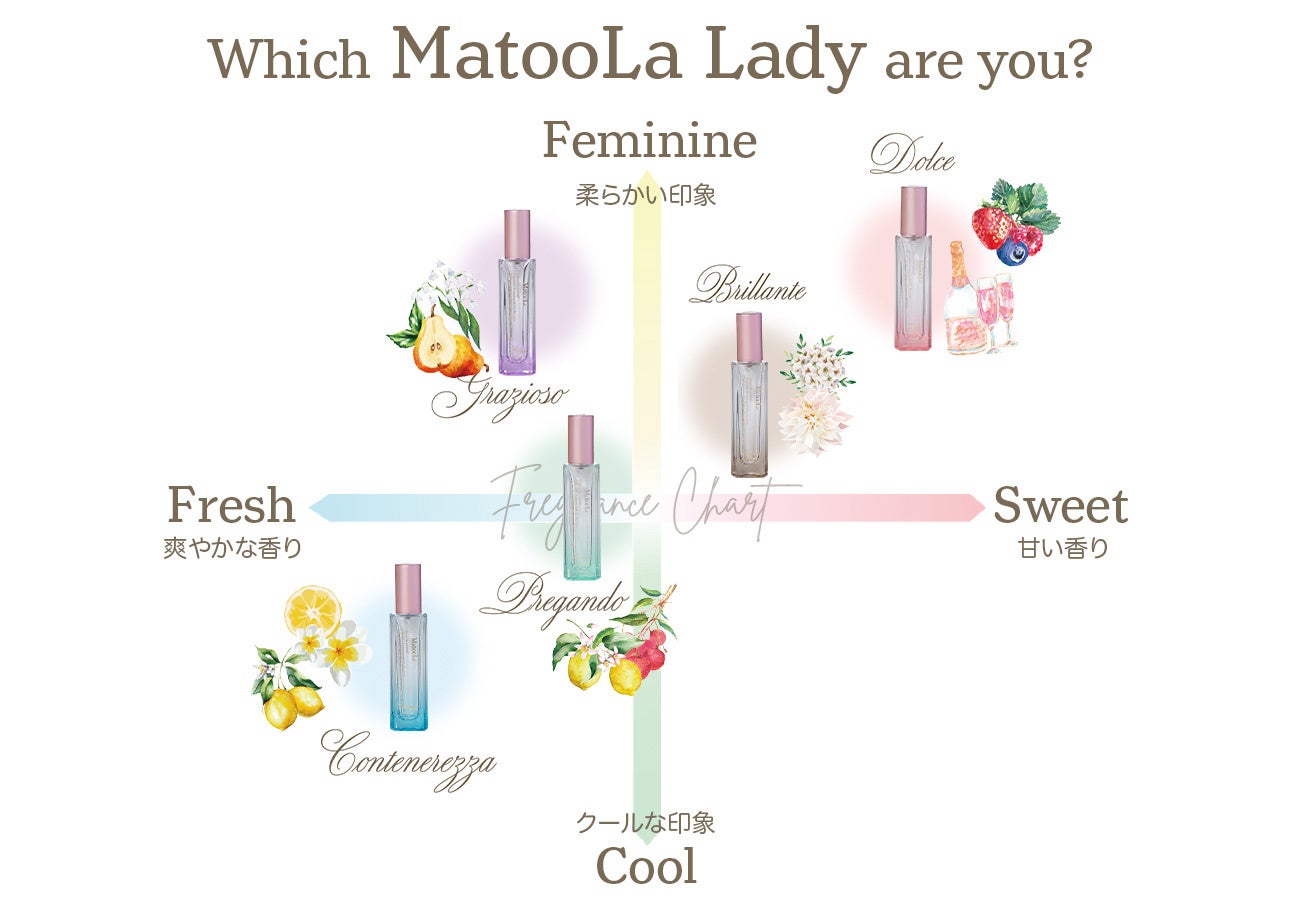 MatooLa(マトゥーラ)は全ての女性に「自分らしく、輝いてほしい」という願いを込めて創られたブランド。自分という個性を誇り、自分自身を労り優しく包み込みたい。「Always be yourself(いつもあなたらしく)」をコンセプトにMatooLaのオードトワレは、幸せのベールでありのままの自分を愛するお手伝いをします。