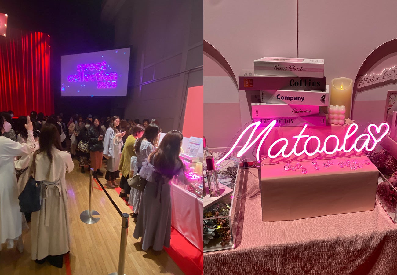 先日恵比寿ザ・ガーデンホールで行われた『sweet collection2023』では発売前のMatooLaオードトワレをお試しいただけるブースを出展。完全招待制のご来場いただいたお客様に大盛況となり、たくさんの方にいち早くMatooLaオードトワレの香りをお楽しみいただきました。また、ブースタイムにはsweetのモデルのみちょぱさんにブース紹介もしていただきました。