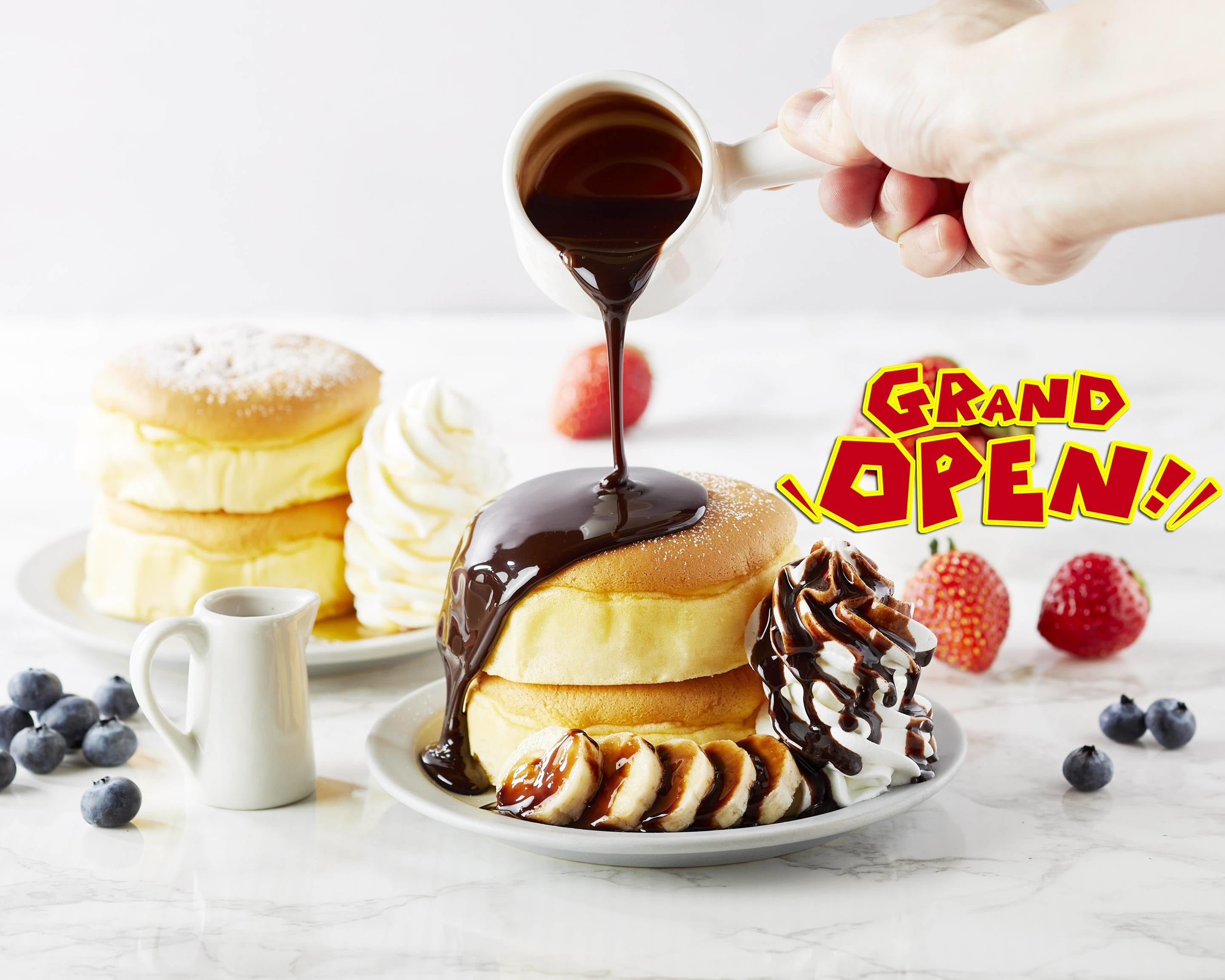 スライスしたフレッシュなバナナと濃厚なチョコレートソースにたっぷりのホイップクリームを添えたふわっとしっとりとろけるスフレパンケーキBOXです!