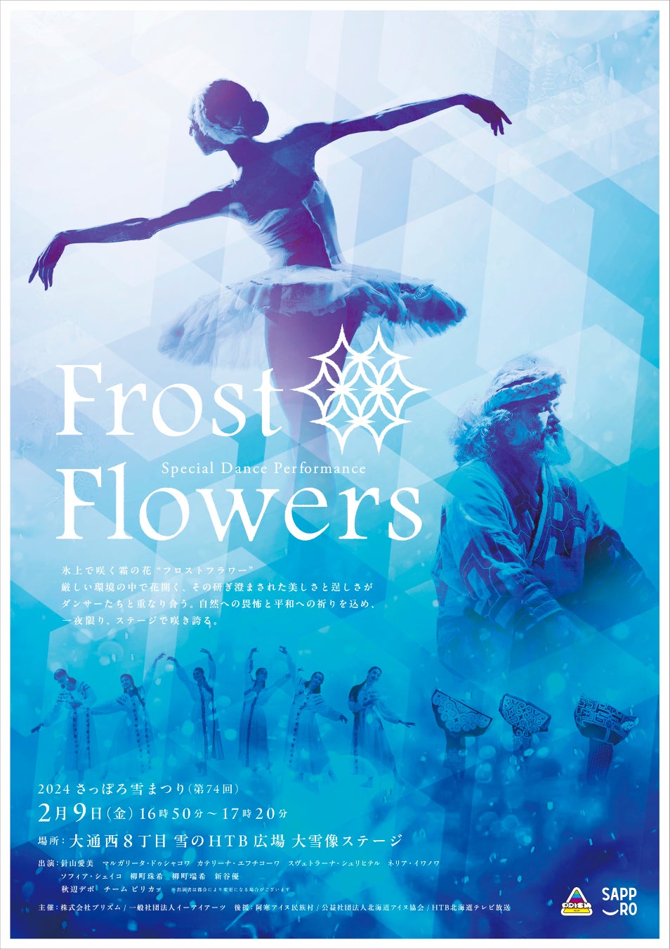株式会社プリズム(本社:北海道札幌市/代表取締役:新谷暢之、以下プリズム)は、『2024 さっぽろ雪まつり(第74回)』(https://www.snowfes.com/)大通会場8丁目「雪のHTB広場」にて行われる一夜限りのスペシャルコラボ・ダンスパフォーマンス『Frost Flowers(フロストフラワーズ)』を一般社団法人イーアイアーツ共同主催し、パフォーマンスの企画・演出および映像コンテンツ制作からオペレーションまでを統括しています。