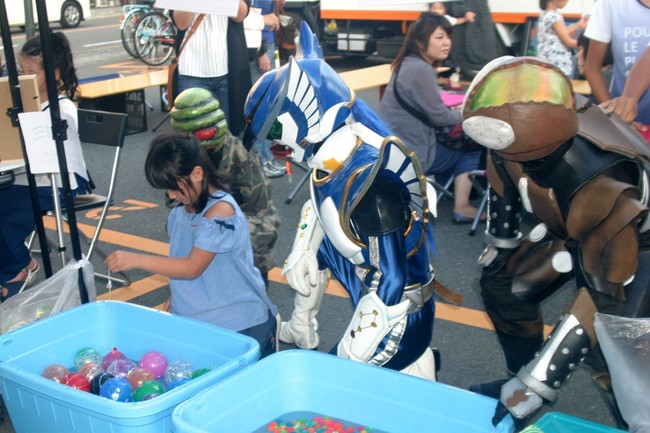 QRカードは12月19日の夕市から導入予定です。今回の夕市では枚方のご当地ヒーロー「超人クラワンガー」のショーを開催することにしており、来場者にカード配布やポイント付与を実施します。商店街には大阪府の感染防止啓発のぼりを掲げ、各所にアルコール消毒液を設置するなど新型コロナウイルス感染症対策もばっちりです。