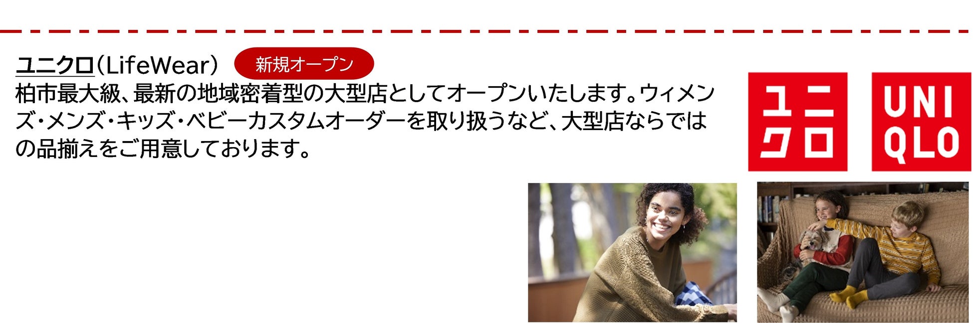 ●柏市内で最大級の面積により、「ユニクロ」の豊富な商品を取り扱う大型店展開となります。