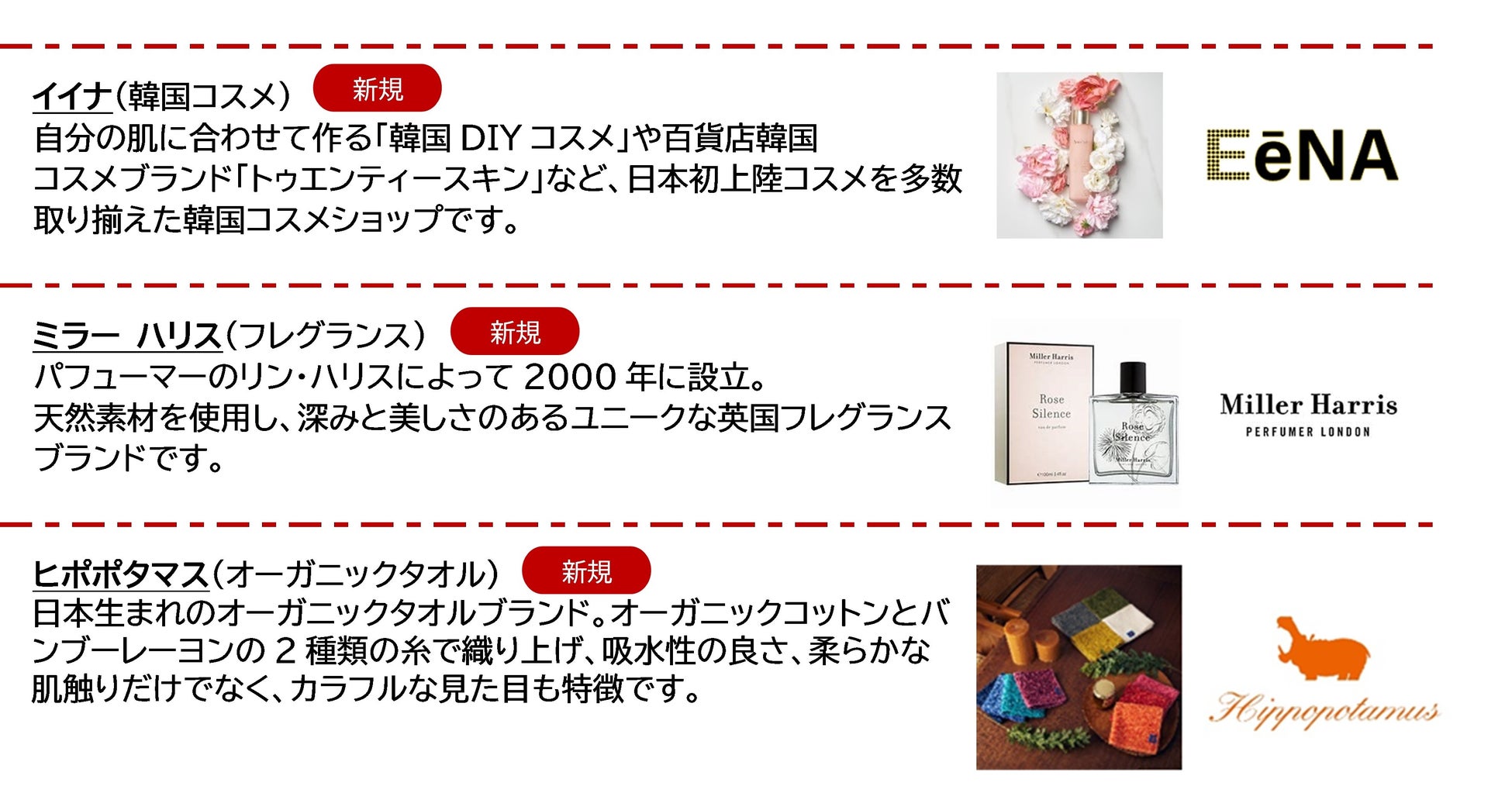 ●新規導入:イイナ(韓国コスメ)、ミラー ハリス(フレグランス)、ヒポポタマス(オーガニックタオル)他
