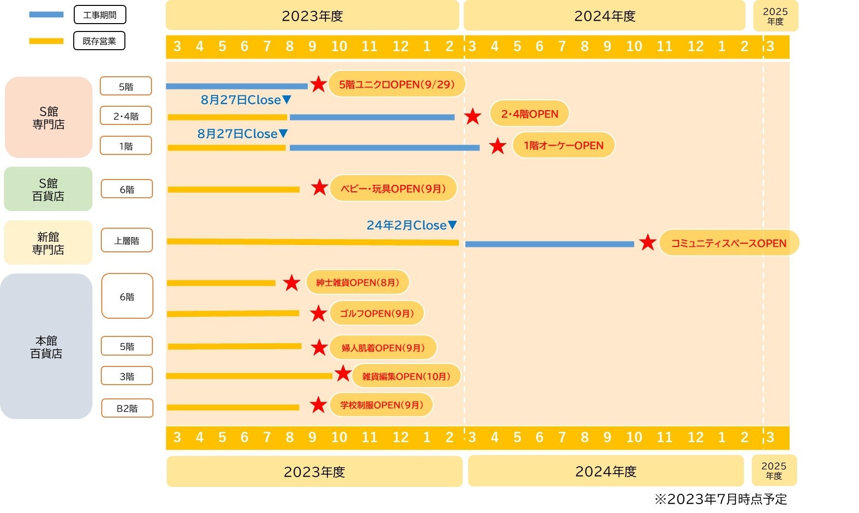 今回のリニューアルでは、新館・S館・本館において、以下のリニューアルを順次展開してまいります。