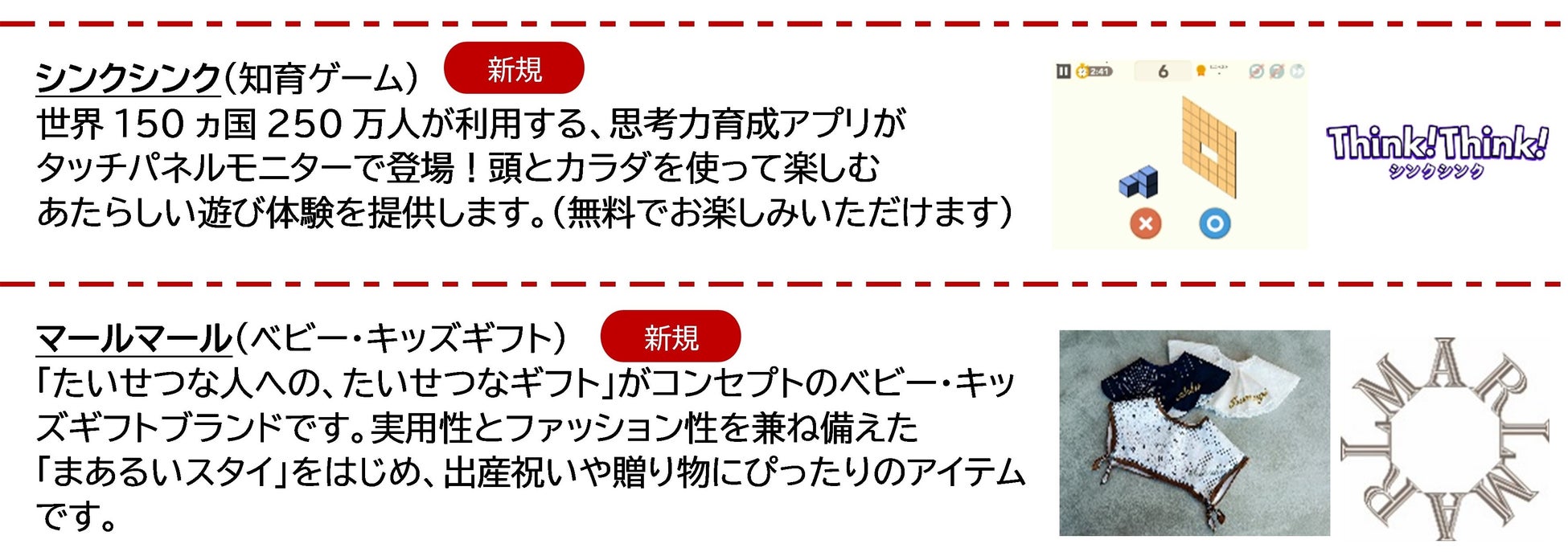 ●新規導入:シンクシンク(知育ゲーム)、マールマール(ベビー雑貨)、ショパン(こども服) ほか