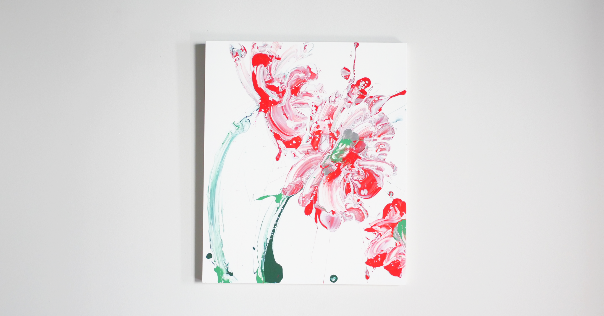 木下友梨香は、花や植物を抽象表現した作品を制作するアーティスト。佐賀の花農家で育ち、幼少期から常に花や植物に囲まれた環境で過ごして、花や植物をモチーフに幼い頃の記憶をスケッチするように作品を制作してきました。