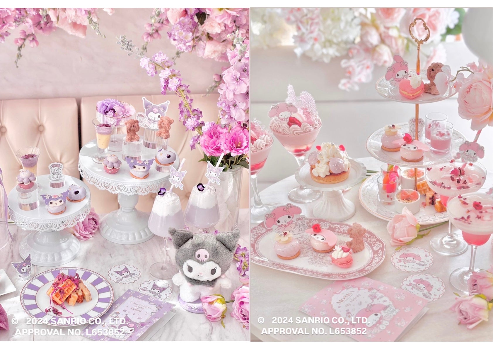 「マイメロディ vs クロミ」をコンセプトに、どちらのテーマも見ているだけで乙女心がくすぐられる大人可愛い、女の子の大好きを散りばめたアフタヌーンティー、テイクアウトドリンクを2店舗同時に販売します。