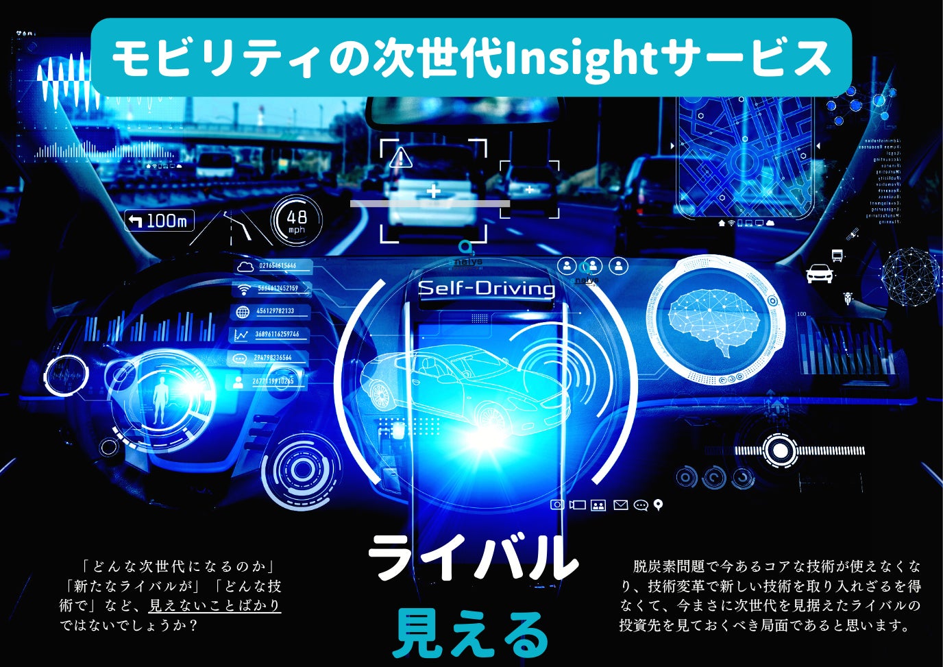 創業者は、オリンパス(株)に務めている際に、社内の事業に影響を及ぼす技術革新を経験し、かつ、10年以上にわたる特許解析の経験があり、そこから、モビリティの次世代Insightサービスが生まれました。