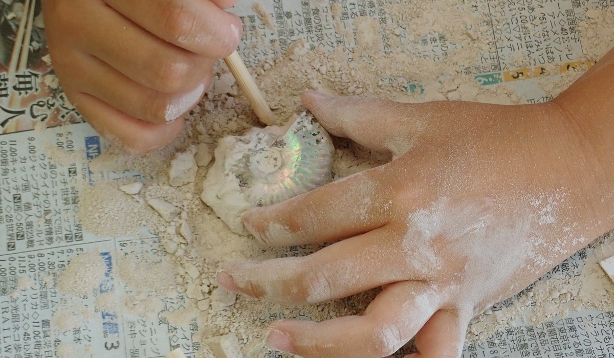 「化石発掘キット」に夢中!小学低学年向け宝石講座「化石発掘体験講座」をカラッツが都内で開催!