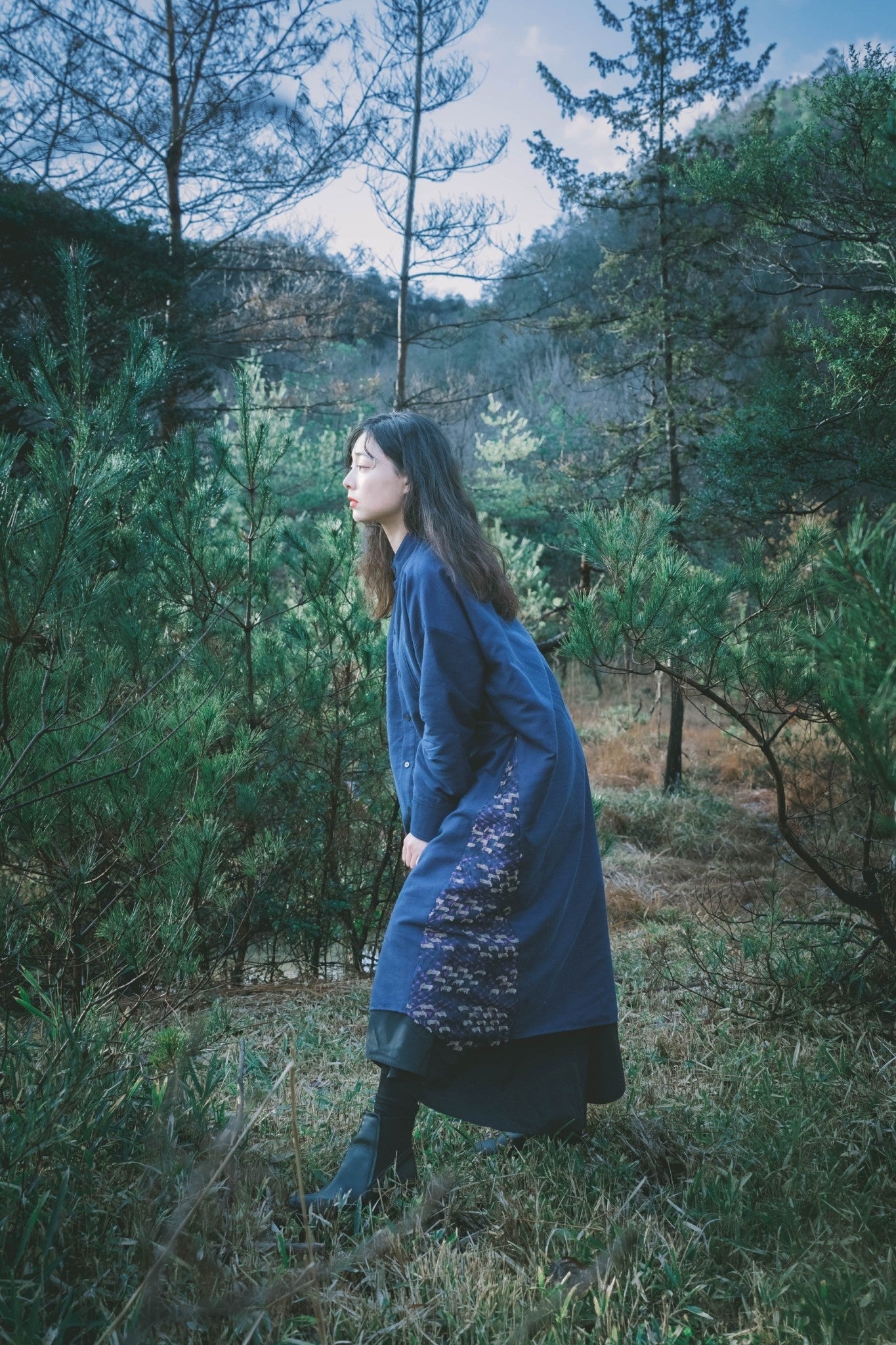 「日々、都会で慌ただしく生活していると『しばらく地面を踏んでいないな、木を触っていないな』と、ふと思ったりします。五感を全て使えていない様な、解放されない息苦しさの様な。深呼吸をするように、記憶のかけらを拾い集め、感覚を手繰り寄せて創造した明け方の夢の中みたいな、霧が立ち込める青い森。そんなイメージを元に