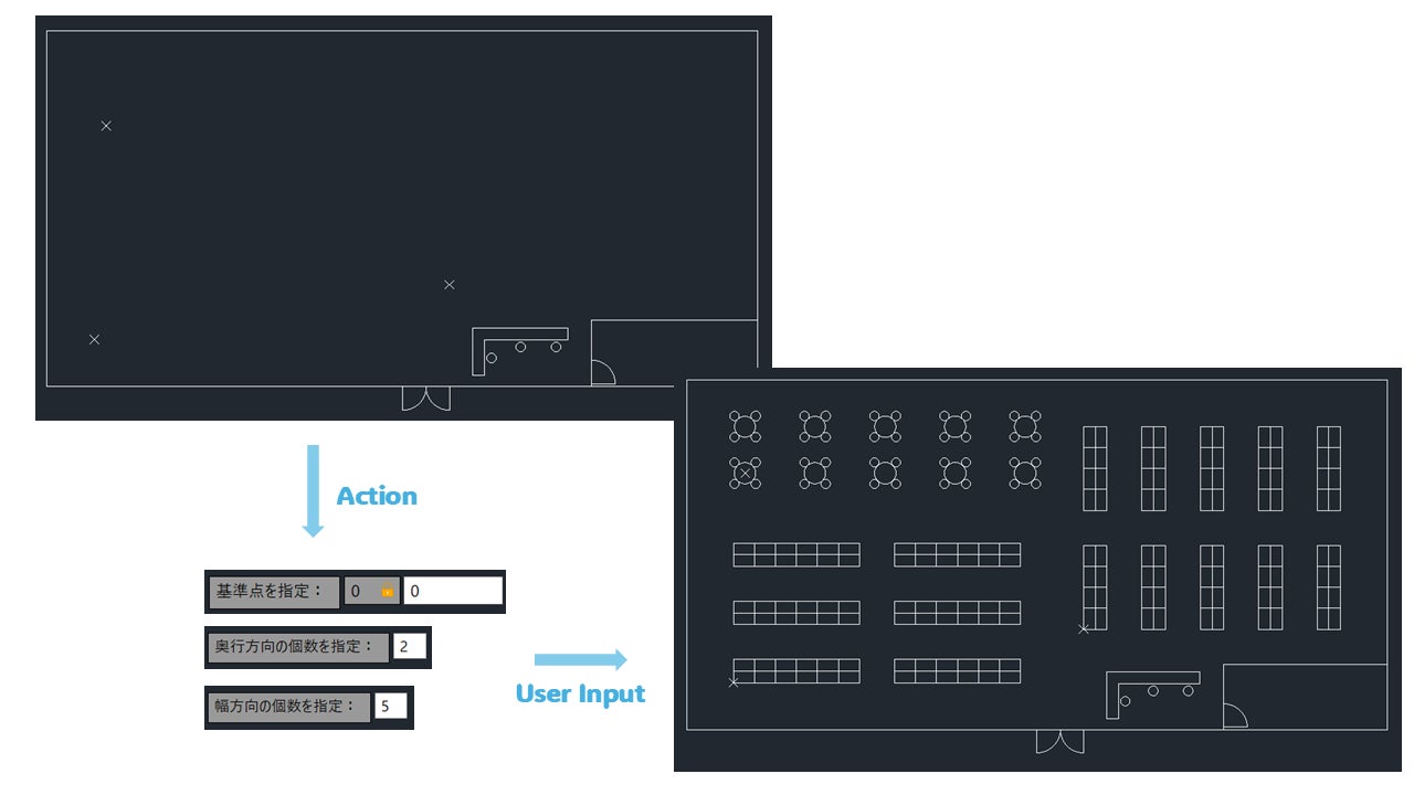 (変数/AutoCADコマンド実行/ユーザー入力など)