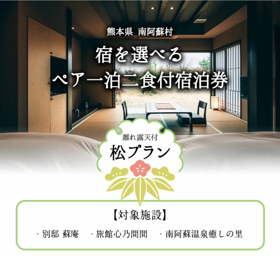 ※対象施設:夢しずく 別邸蘇庵、旅館心乃間間、南阿蘇温泉 癒しの里