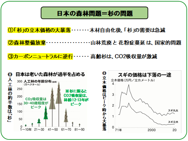 【猫福連携】は「杉の需要低迷」による「林業の衰退」や「育林放棄」など森林放置問題の対策にも貢献します。