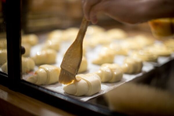 ※AOP(Appellation d’Origine Protégée)は、農産物の“産地・製法・品質”が一体となって守られた、EUの厳格な認証制度です。いわば“テロワール(風土)”の証であり、限られた土地で、伝統的な方法により丁寧に作られたものだけに与えられます。当社では、そうした背景を持つ素材を大切にし、味わいの深さや香りの余韻まで計算したうえで厳選しています。クロワッサン フランセに使用している「モンテギュバター」は、シャラント地方でつくられるAOP認証の発酵バターのため、芳醇で力強い香りが、層の隅々にまで行き渡ります。良い商品作りは、良い材料選びから始まります。
