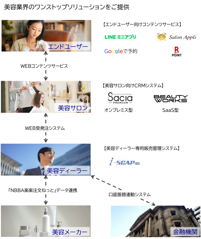 POSシステムとスマホアプリ、コンテンツサービスを併用して利用することで、サロン顧客の新規獲得やリピート集客につなげることができます。営業活動の変革とお客様のニーズを捉えた最適な商品・サービスを提供することで、当社と理美容業界のDX化を普及・推進させることを目指します。