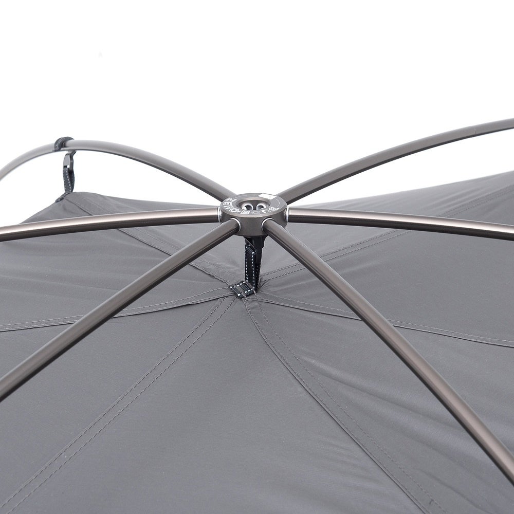 ZEROGRAMはモノフィラメント(monofilament)生地を、軽量テントのインナーテント全体(フロア除く)およびベンチレーション部分に採用しています。メッシュのような通気性を持ちながら撥水性に優れ、軽量で強度が高い素材です。インナーテント内部で発生した水分を含む空気が結露としてフライについてもインナーテントに戻ることはほぼありません。またフライにつく結露もミニマムに抑えます。