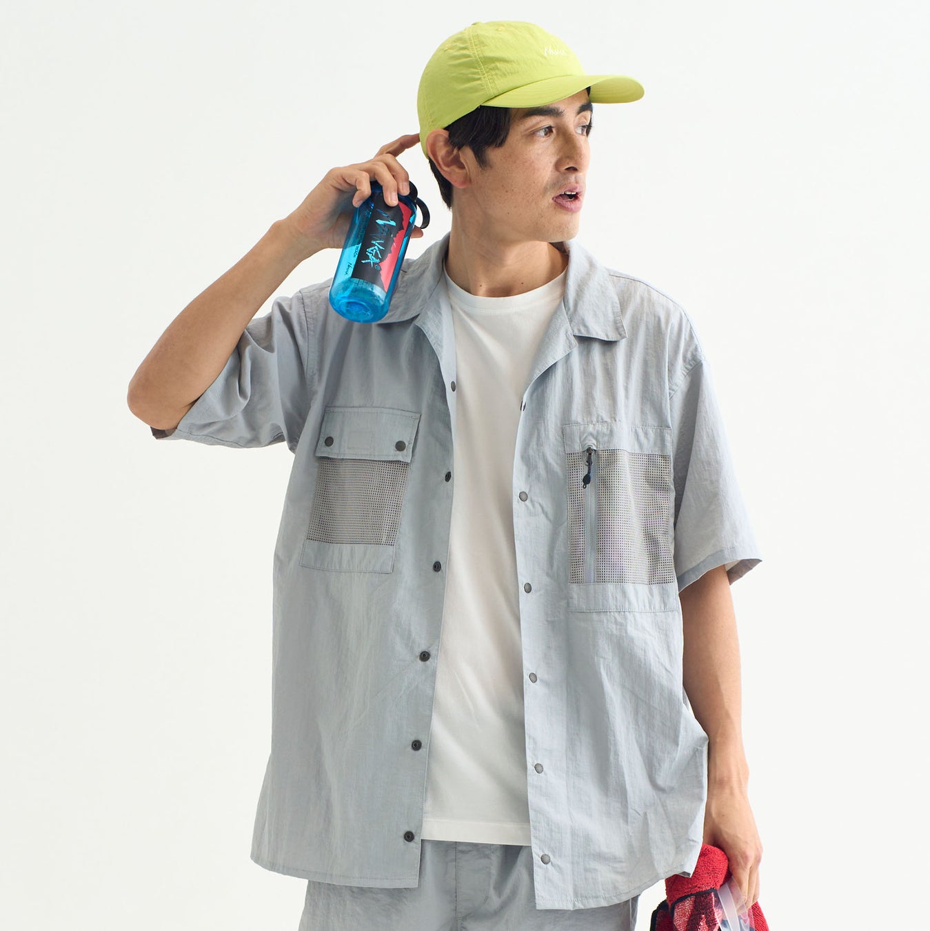 撥水加工を施したナイロンタッサー生地を用いたオープンカラーシャツから新色が登場。サイズ感もゆったりとしており、リラックスした気分で着用を楽しむことができます。同素材のショーツとセットアップで着用するのもおすすめ。