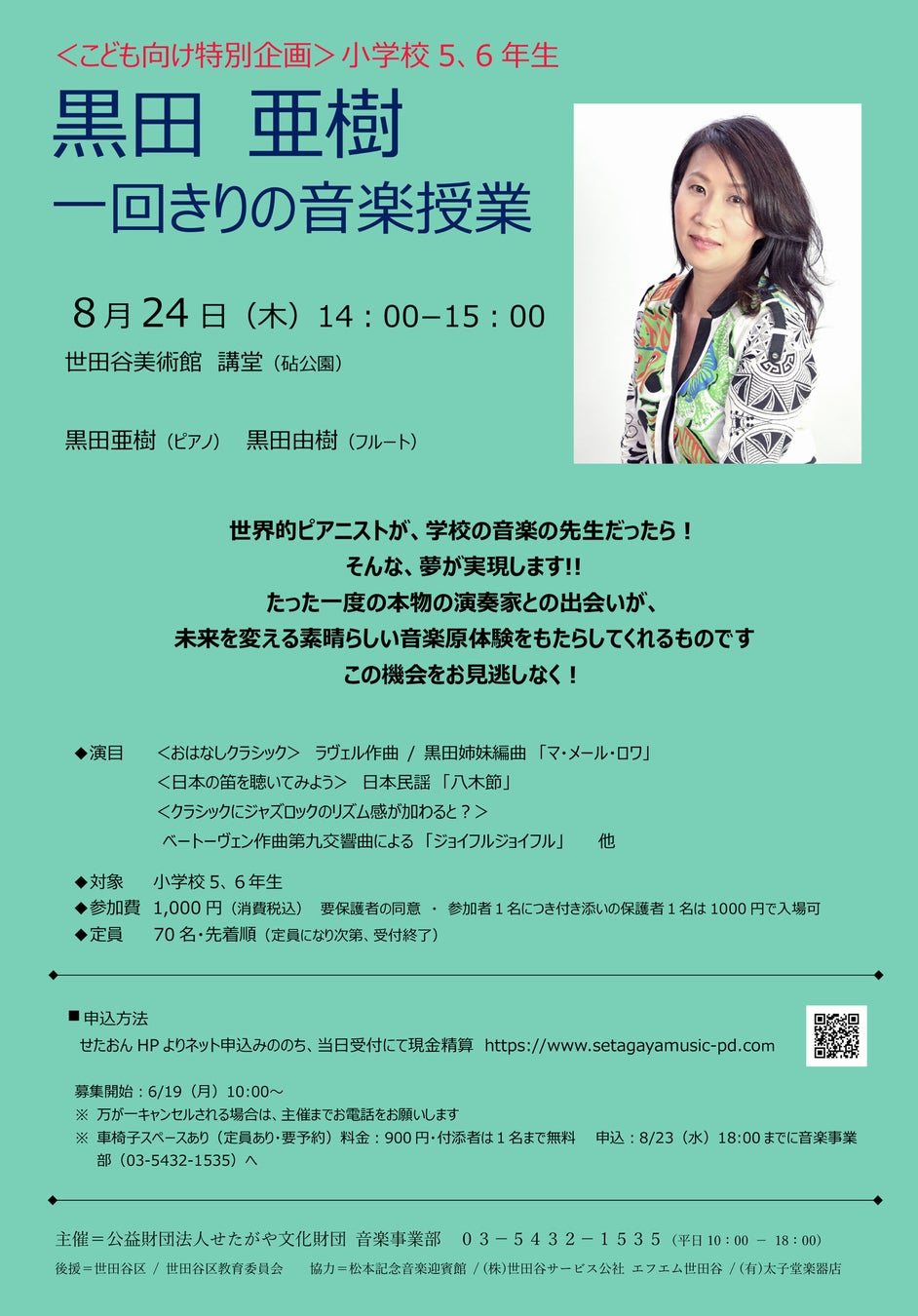 〈こども向け特別企画〉黒田亜樹 一回きりの⾳楽授業