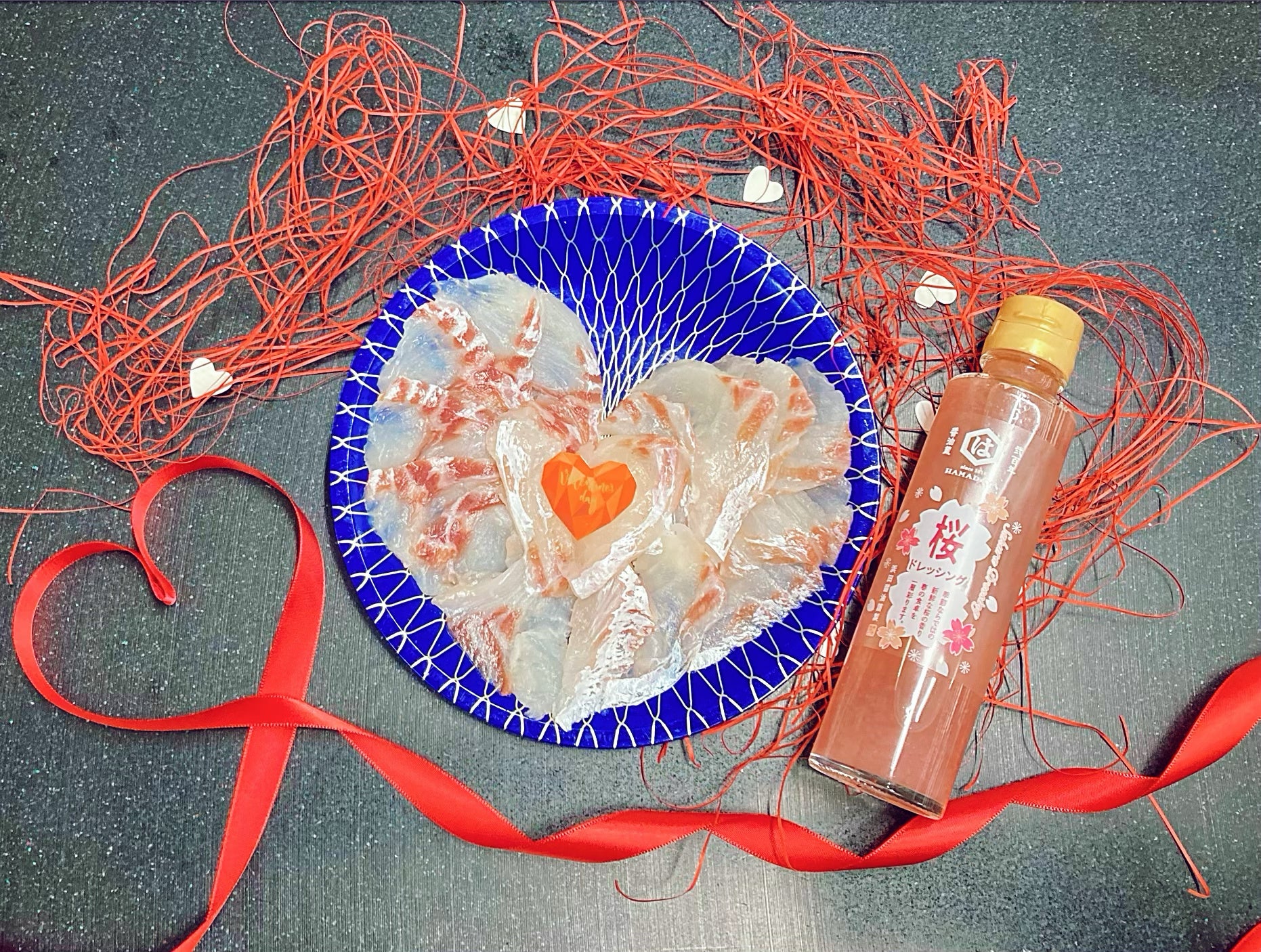 〜真鯛のハート型刺身とピンクの桜ドレッシングセットを限定100セット〜