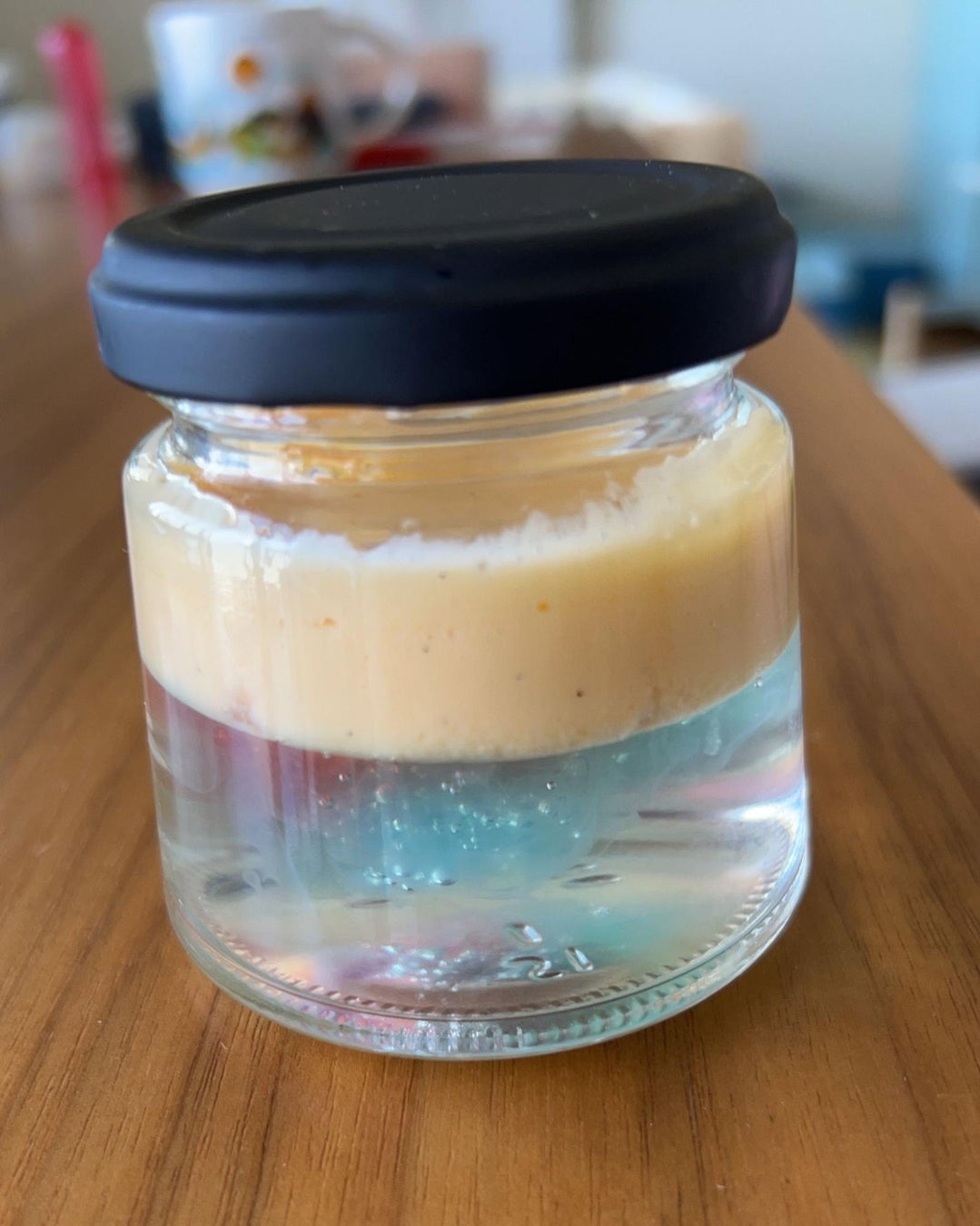 ゼリーが硬すぎるとプリンと一緒に食べた際に美味しさが損なわれるため、プリンの食感と上手くマッチする「やわらかさ」の調整に難航。何度も試行錯誤を重ね、最適なバランスを見出しました。