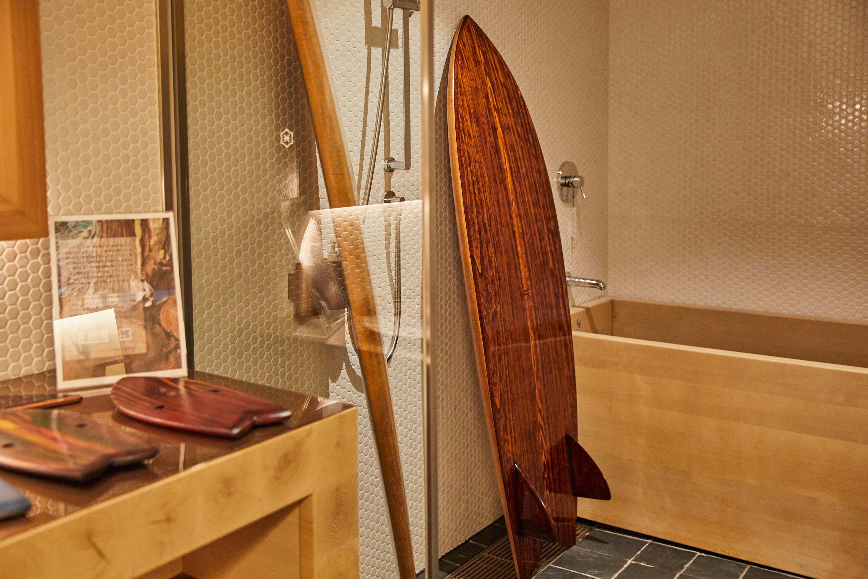 客室は、京都の伝統的な住宅形式の町家をモダンに表現した、細長い"マチヤスタイル"のデザインが特徴です。