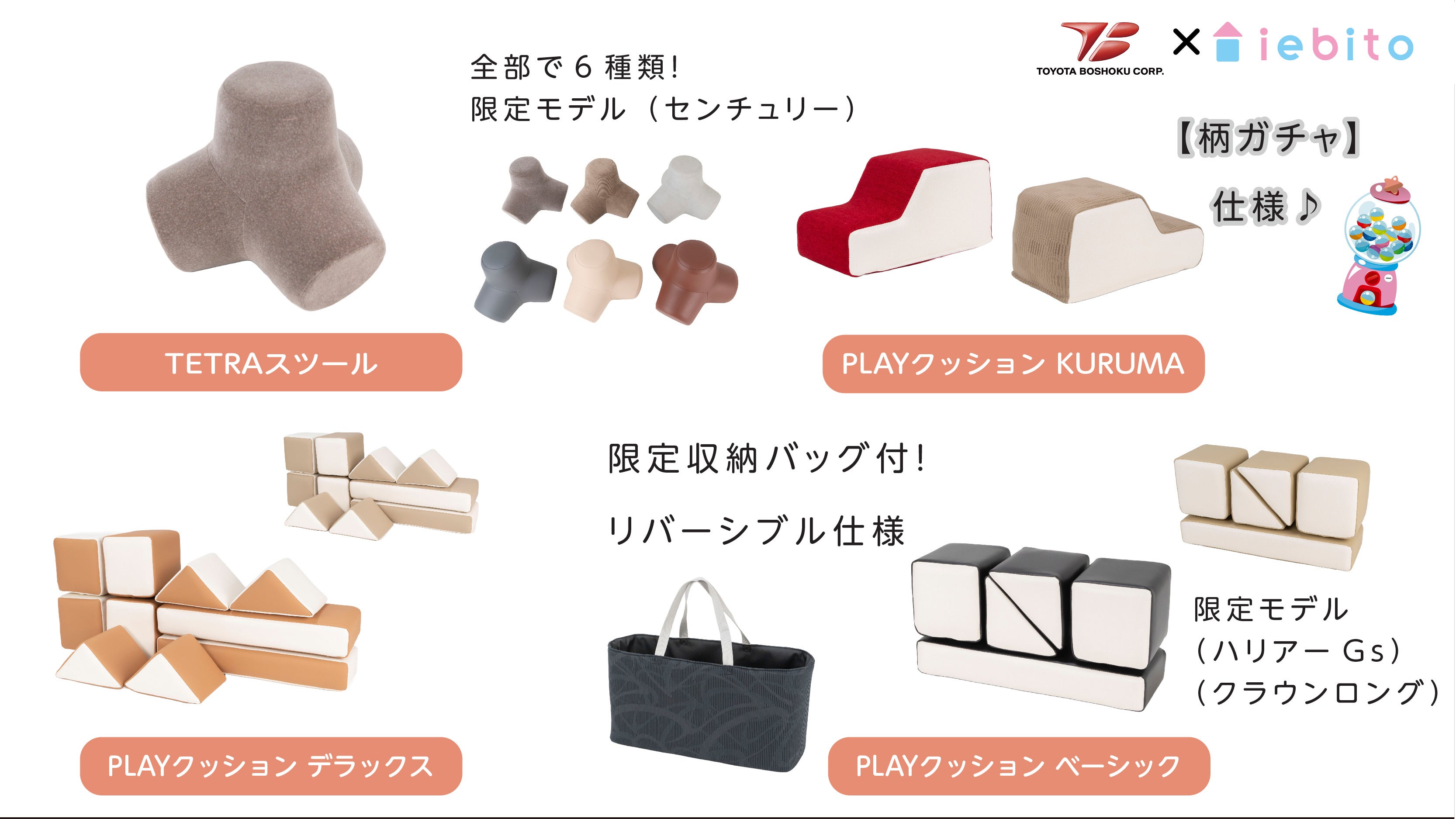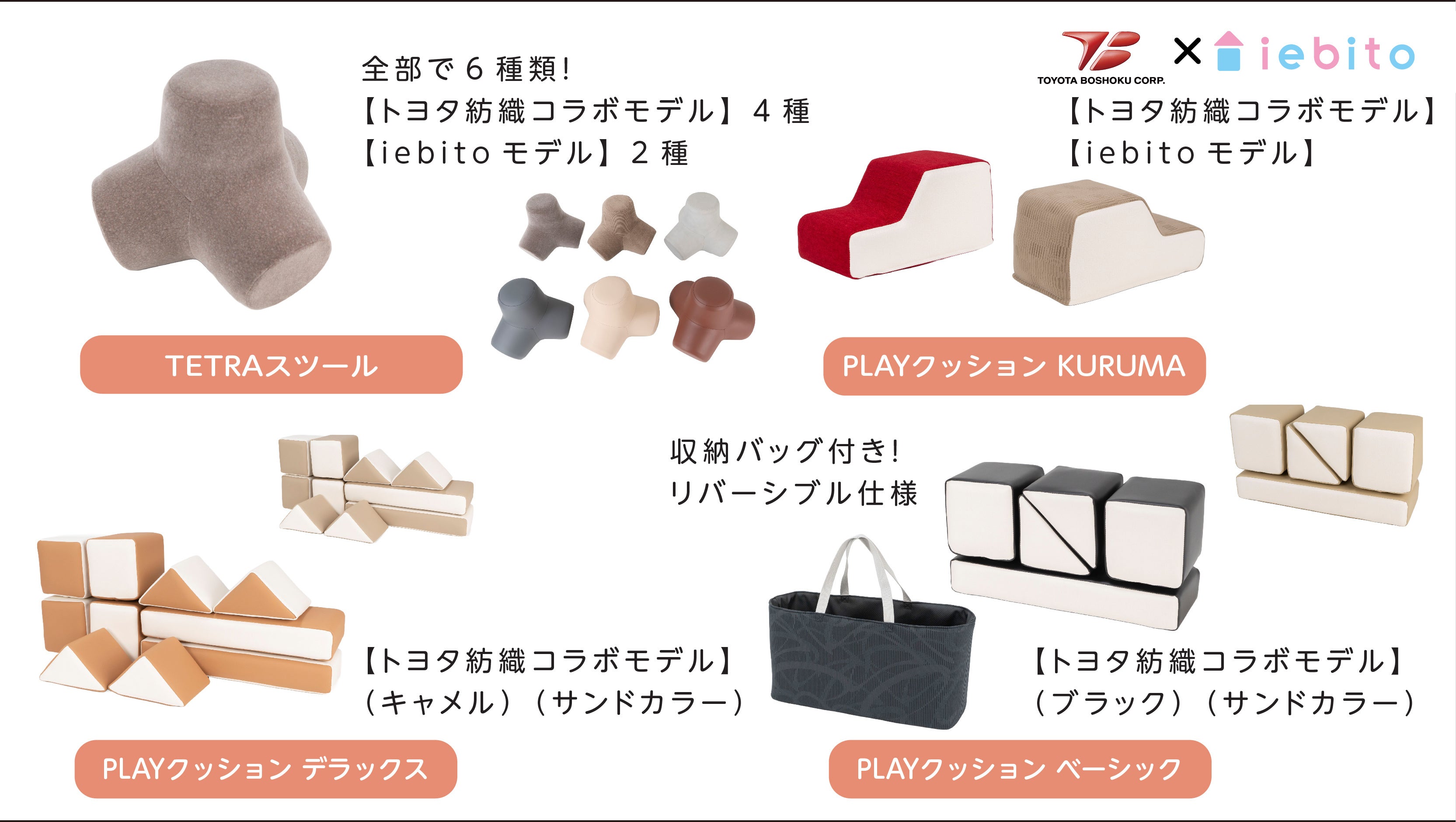 人気シリーズ「PLAYクッション」を手がける愛知のブランド「iebito(イエビト)」と「トヨタ紡織」のコラボレーション企画。「Makuake」での先行販売の結果を受けて、いよいよ10月27日(金)より一般販売を開始。熟練の職人の手で生まれ変わった、特別な「アップサイクル商品」をお届けします。