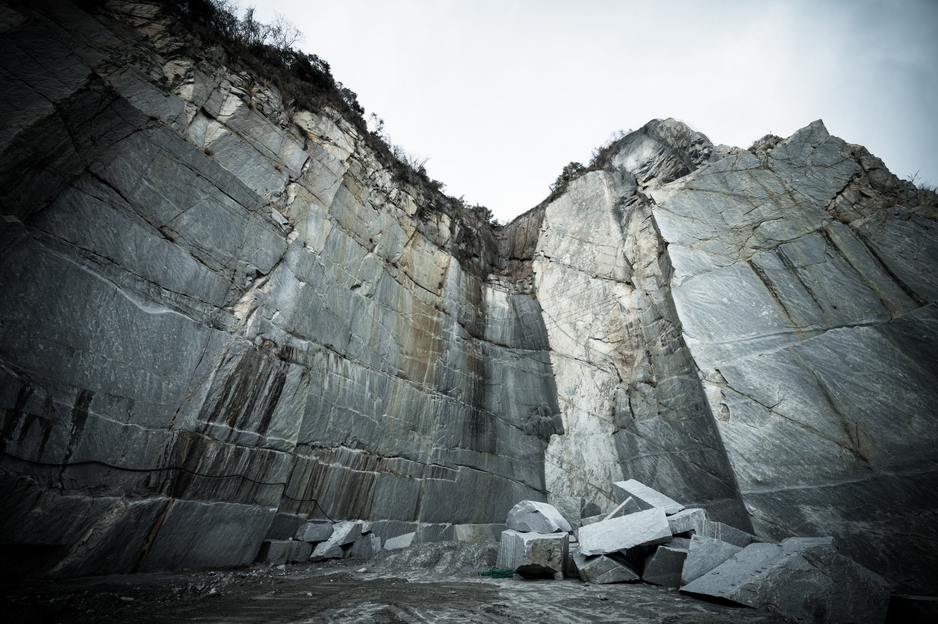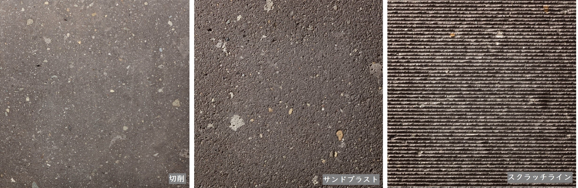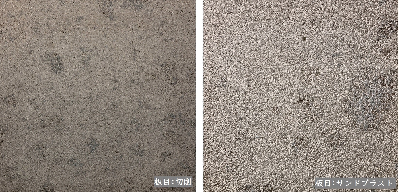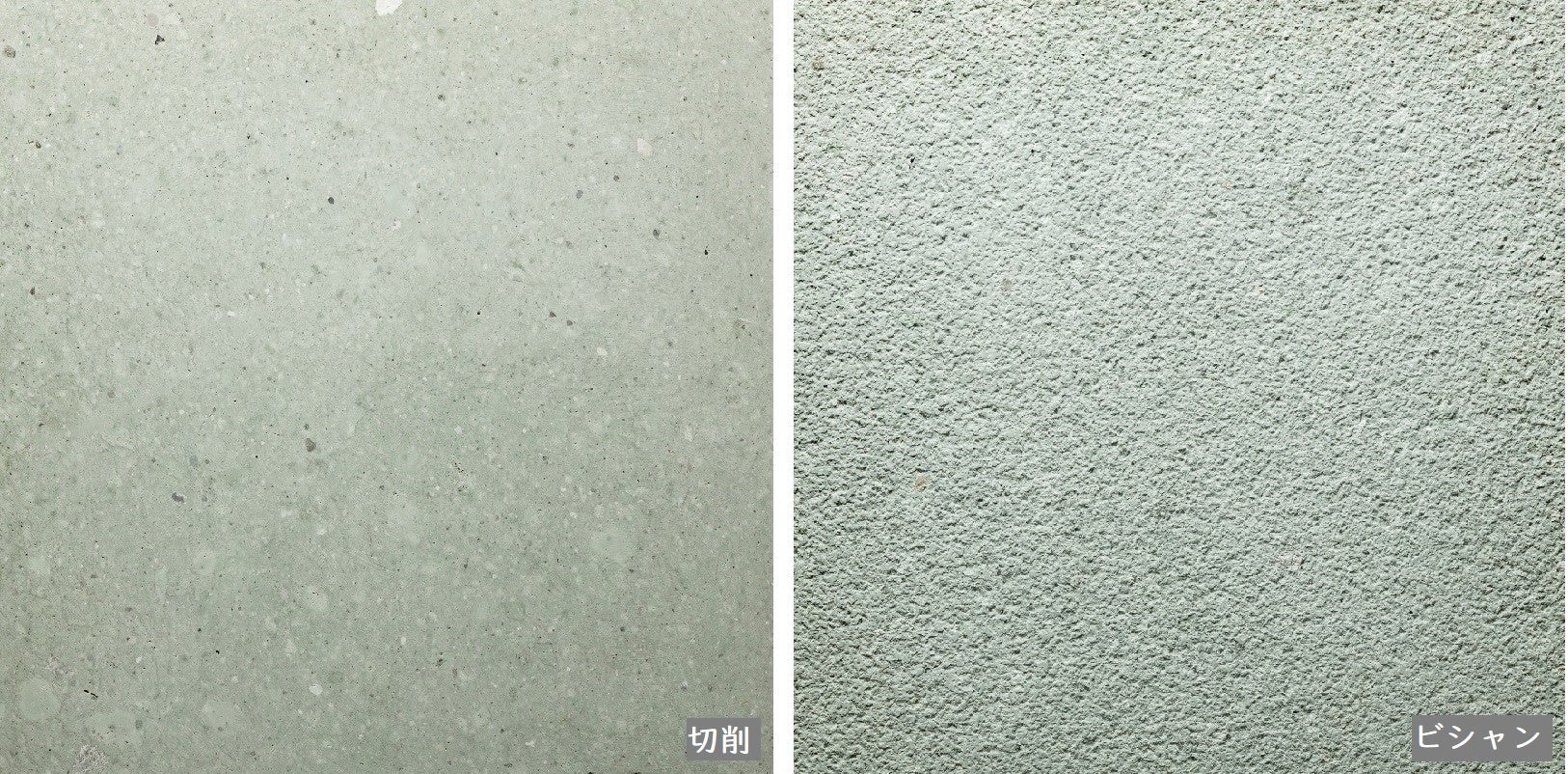 黄竜山石と同じ兵庫県高砂市宝殿の採掘場で採れる青みを帯びた凝灰岩。目が細かく滑らかな切削仕上げは青みが強く出て、クールな印象を与えます。表面を叩くビシャン仕上げは、やや青白い落ち着いた雰囲気を生みます。