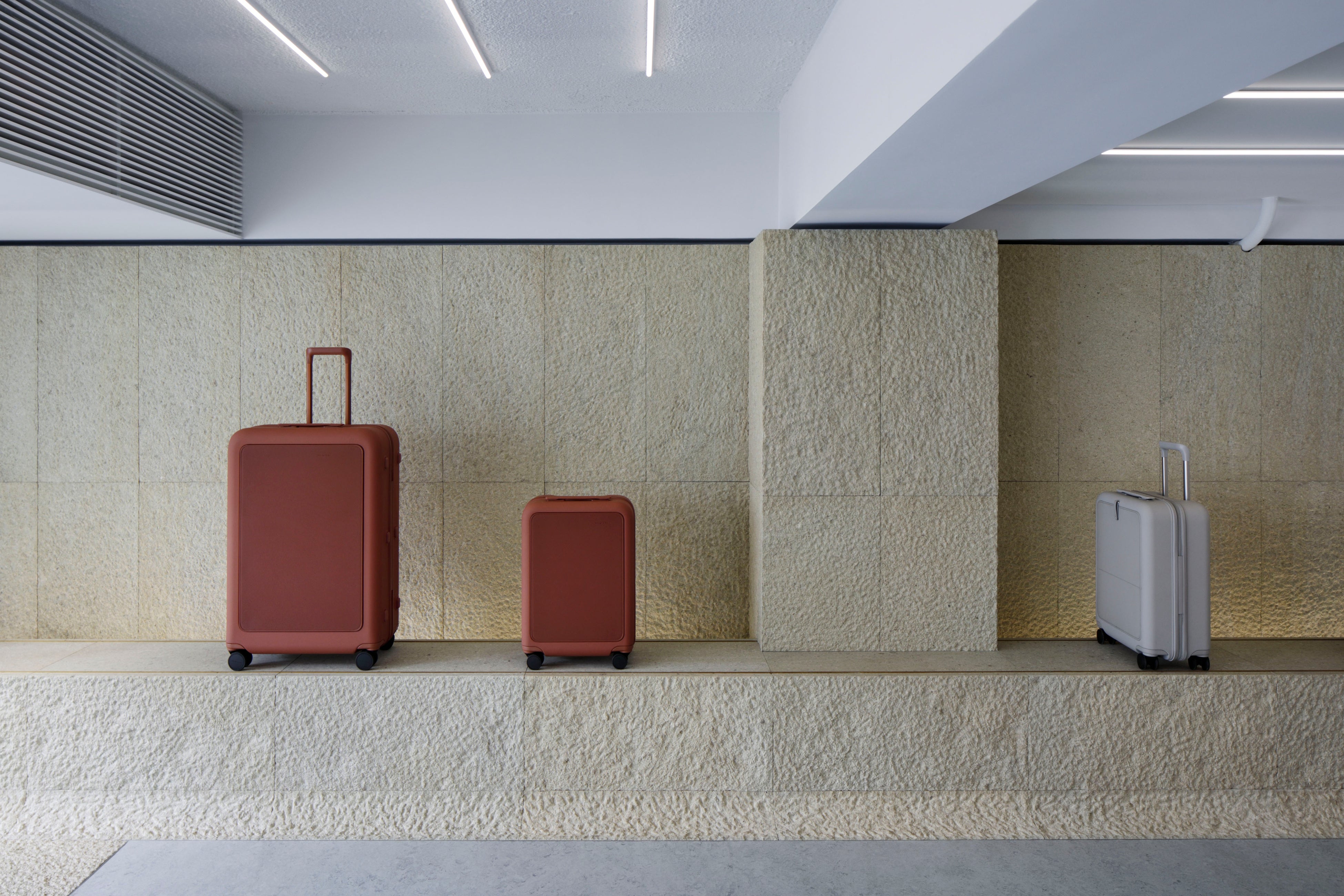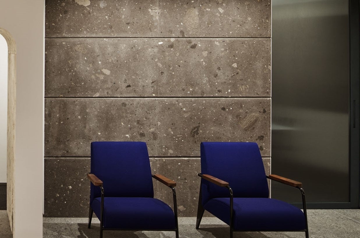 黄竜山石を床と壁面に使用した、東京・青山のスーツケース専門店「moln南青山店」