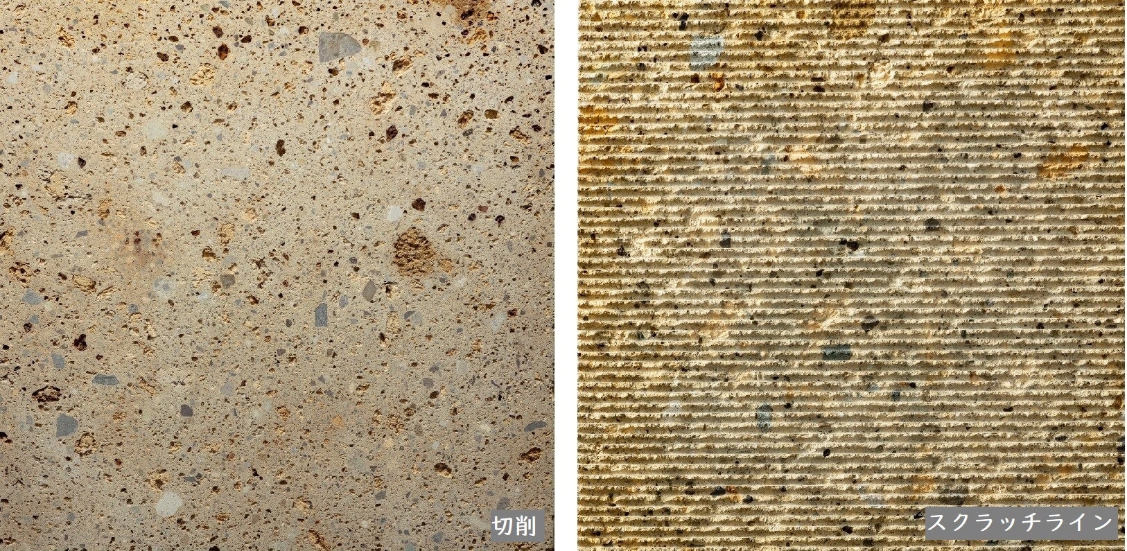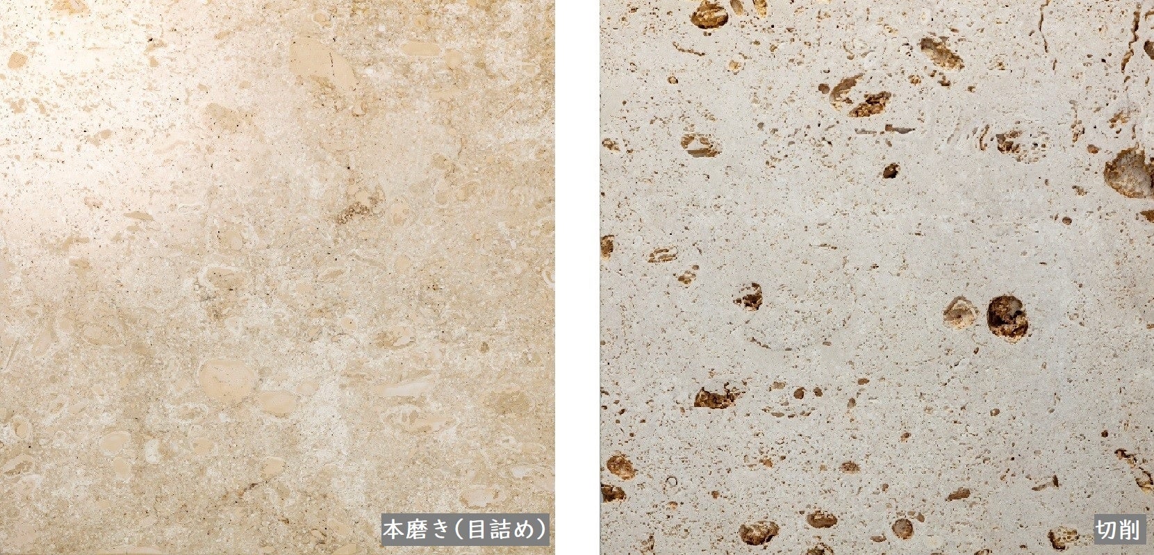 数万年以上前の珊瑚や貝殻などが堆積して形成された石灰岩。巣穴と呼ばれる穴が特徴で、自然が生み出す色味や不均一な模様は、南国の柔らかさや温かみを醸し出します。