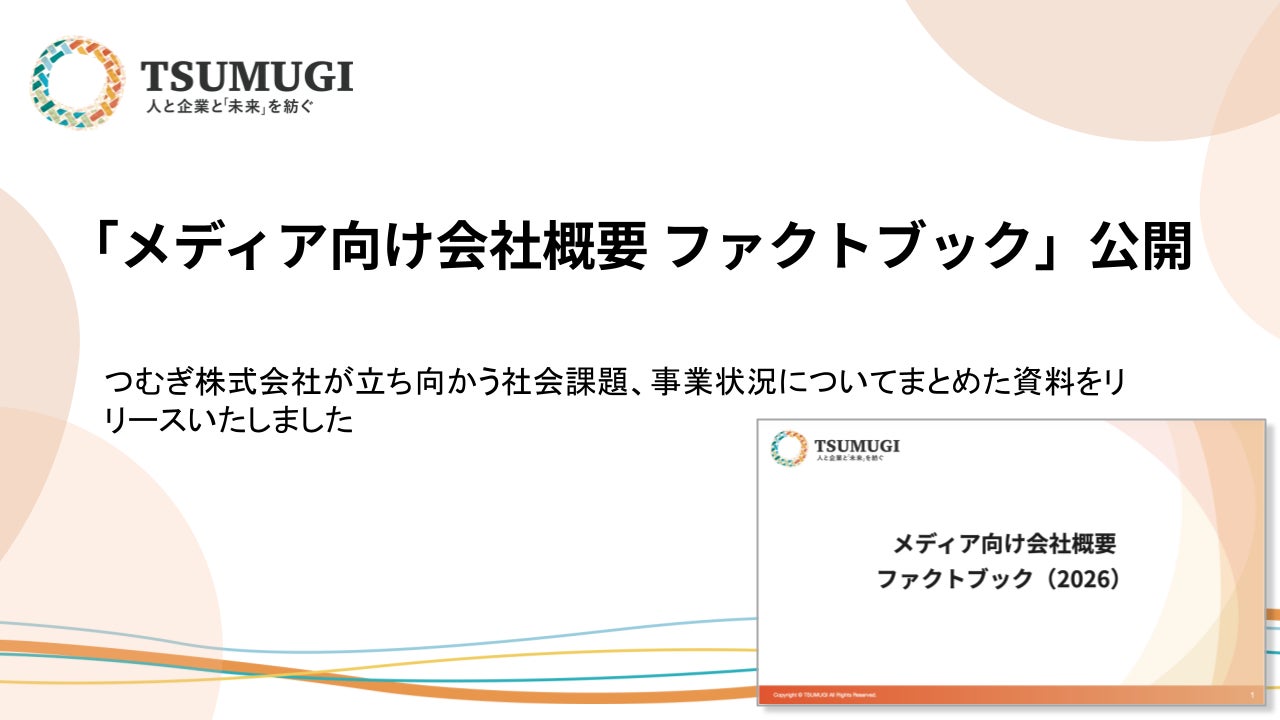 人事コンサルティングや広報支援といったサービスを通して企業が“いい会社”となるサポートを行っている、つむぎ株式会社(所在地:東京都品川区、代表取締役:前田亮)は「メディア向け会社概要・ファクトブック」を公開しました。