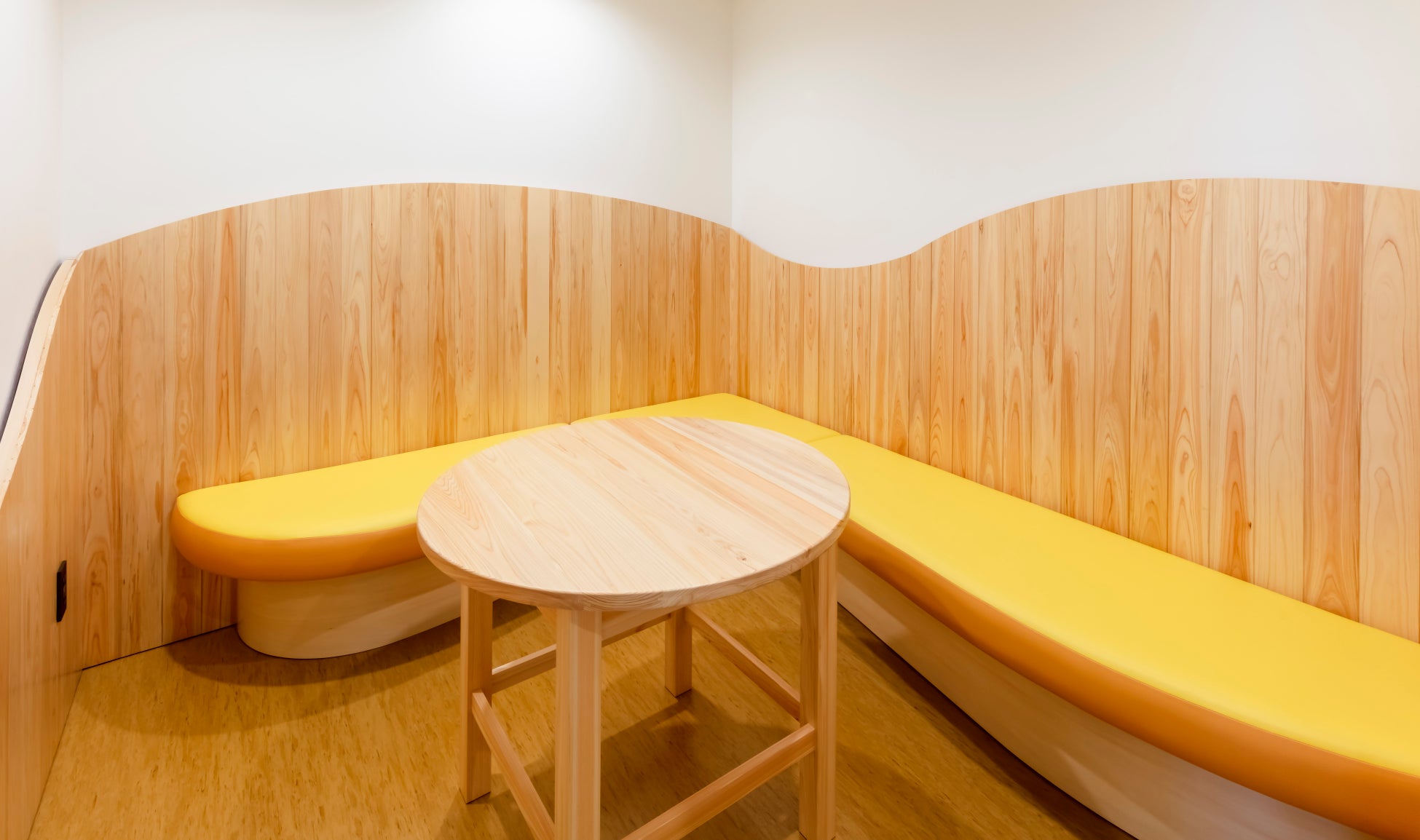CFを通じてPCU家族控室の改修に始まった一連のプロジェクトがICU家族控室の改修をもって完了を迎えました。ICU(集中治療室)家族控室で待機される患者さんのご家族・縁者の方々の気持ちや状態、現状の利用の様子を確認しながら、病院スタッフや筑波大の学生チーム「パプリカ」と共に改修後の環境について検討を重ねてきました。設計のキーワードを「気持ちの換気を行う空間/印象に残りすぎない空間」にすることになり、広いソファや丸みのある壁や淡い色の内装など柔らかい空間づくりを目指しました。ここを利用される方の気持ちを少しでも落ち着けられる環境になれたらと願っています。