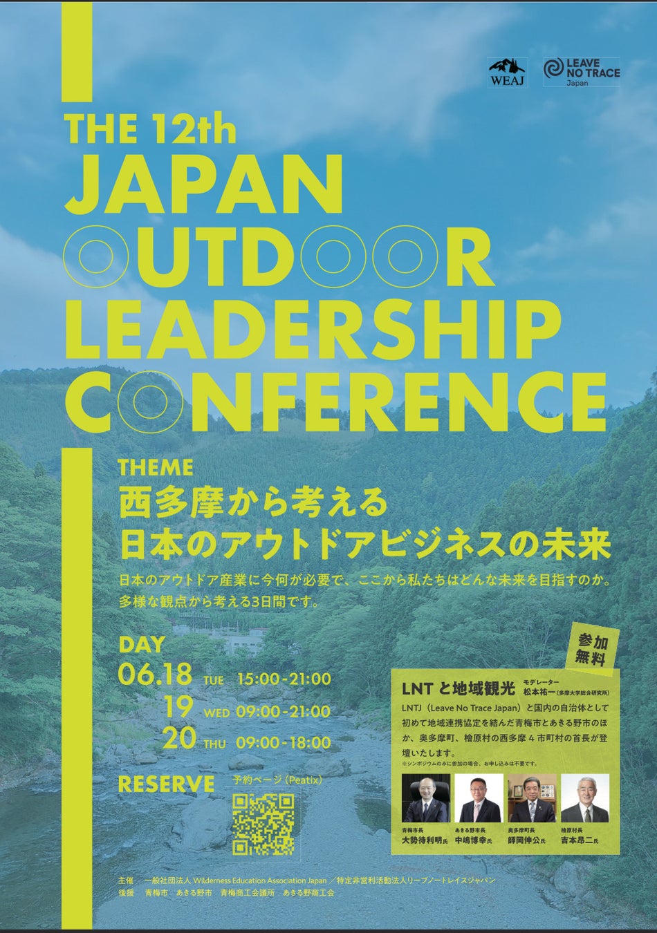 今回のカンファレンスのテーマは「西多摩(東京都最西部エリア)から考える日本のアウドドアビジネスの未来」。野外教育のプロフェッショナリズムをテーマとするWilderness Education Association Japanのカンファレンスとして正面から「ビジネス」としての野外教育やアウトドアの世界に向き合います。