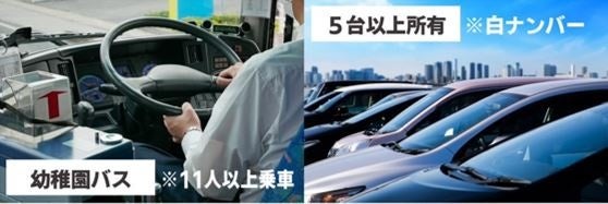 乗車定員が11人以上の白ナンバー車1台以上を所有、または白ナンバー車5台以上を所有する企業