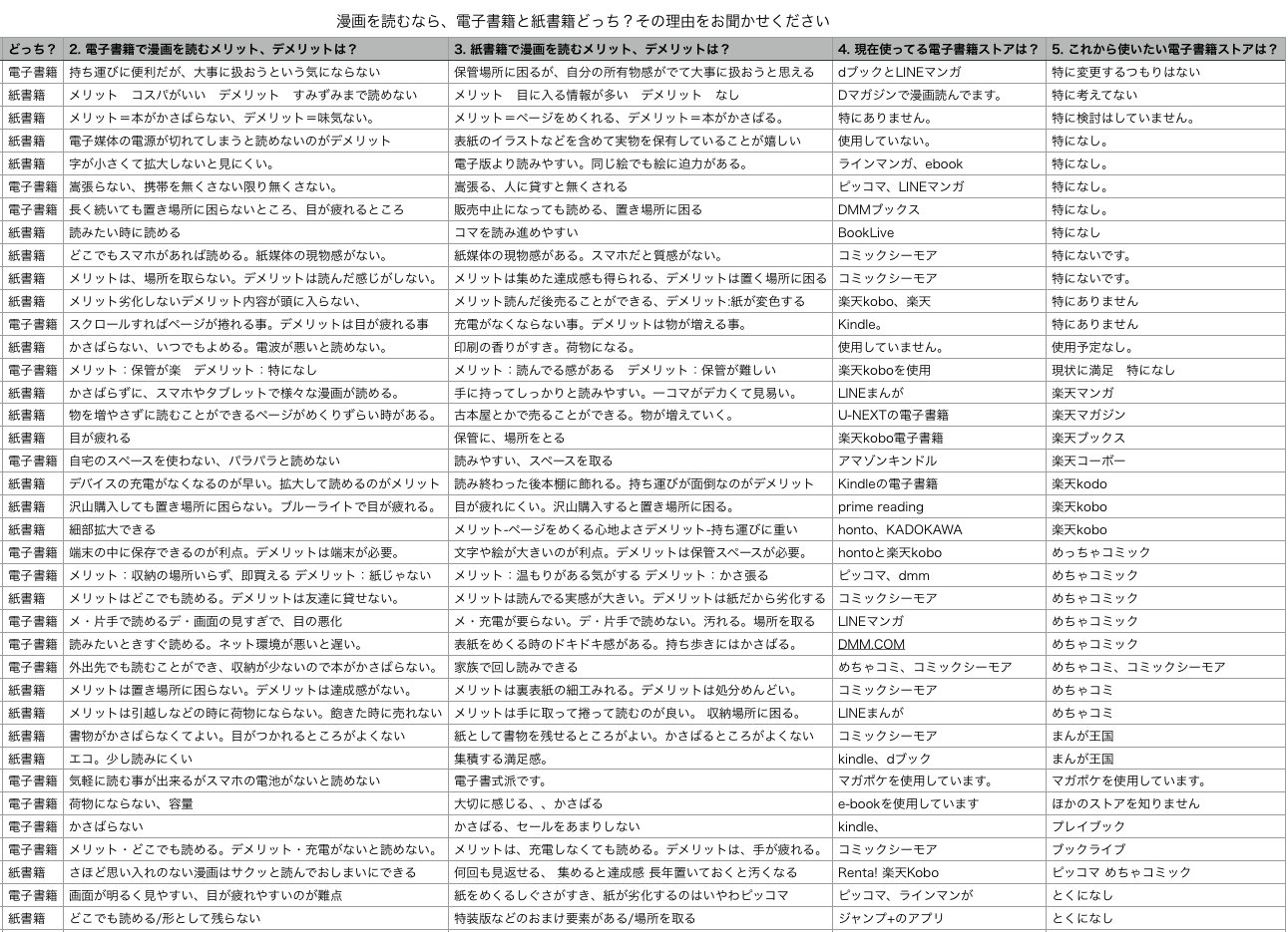 3.紙書籍に質問した、漫画を電子書籍で読むメリット、デメリット
