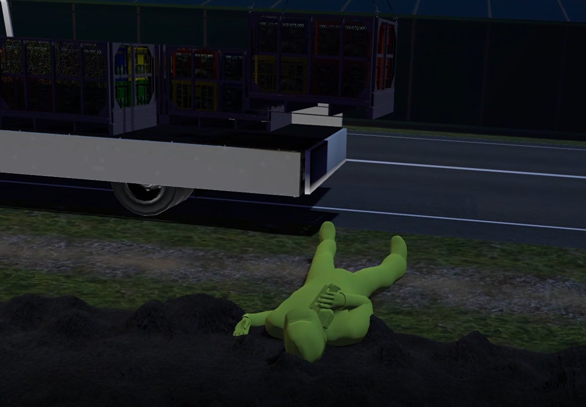 ラジコン(液晶ラジコンJOY、もしくはスイッチ式ラジコン)を使用して、VR内で荷の積み下ろし等の作業を行っていただきます。一部危険な作業がありますが、時間がなく焦っていたり、危険と認識せずに作業を進めます。