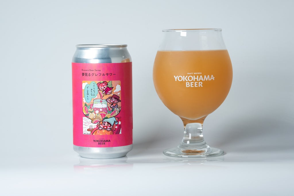 井田ブルワーによる「夢見るグレフルサワー」では、横浜ビール初のサワービールに挑戦。サワービールとは、麦汁を乳酸菌で発酵することで、爽やかな酸味を引き出したビールのことを言います。ラベルのイラストでは、井田ブルワーが妖精(グレフルちゃん)にアドバイスを貰い、ビールを醸造している夢の様子が描かれています。