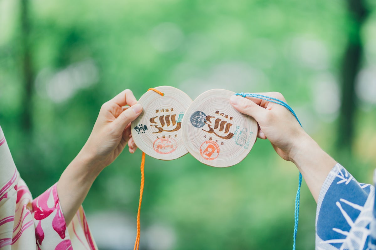 入湯手形を自分好みにカスタマイズ手形をご利用の際には、手形の表面に判子(スタンプ)を押印します。判子は各旅館のオリジナルデザインが施されており、湯めぐりを楽しみながら自分だけの手形ができあがります。新たな手形には、温泉マークに循環を表す「巡」りと「くろ川」の文字を表現しました。